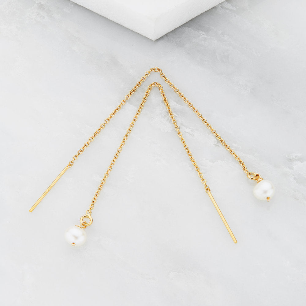These Silver Pearl Drop Ear Threaders by Lily & Roo are a perfect choice for brides or bridesmaids looking for something elegant and chic. Handcrafted in our London studio, these threader earrings feature genuine freshwater pearls, adding a touch of luxury and refinement to any look. Designed with ease of wear in mind, they come with clear silicone backs for adjustable length and secure placement.
