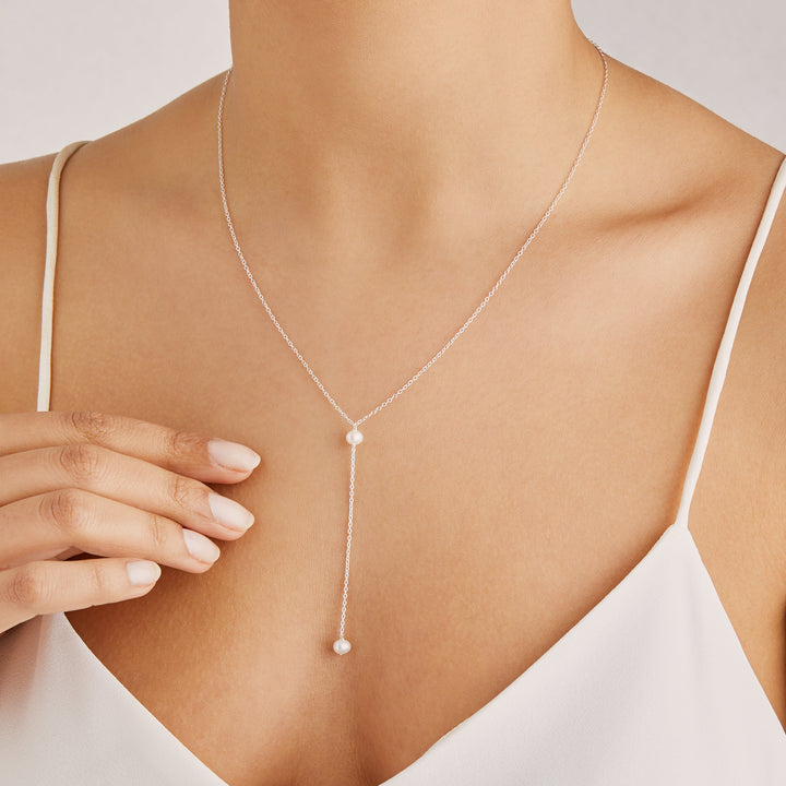 This Silver Pearl Lariat Necklace by Lily & Roo is a delicate and sophisticated piece, perfect for completing any outfit. Handmade in our London studio, this necklace features an ethically sourced freshwater pearl and is perfect for brides or bridesmaids on their wedding day. The lariat design adds a modern yet timeless touch, making it versatile for any occasion.