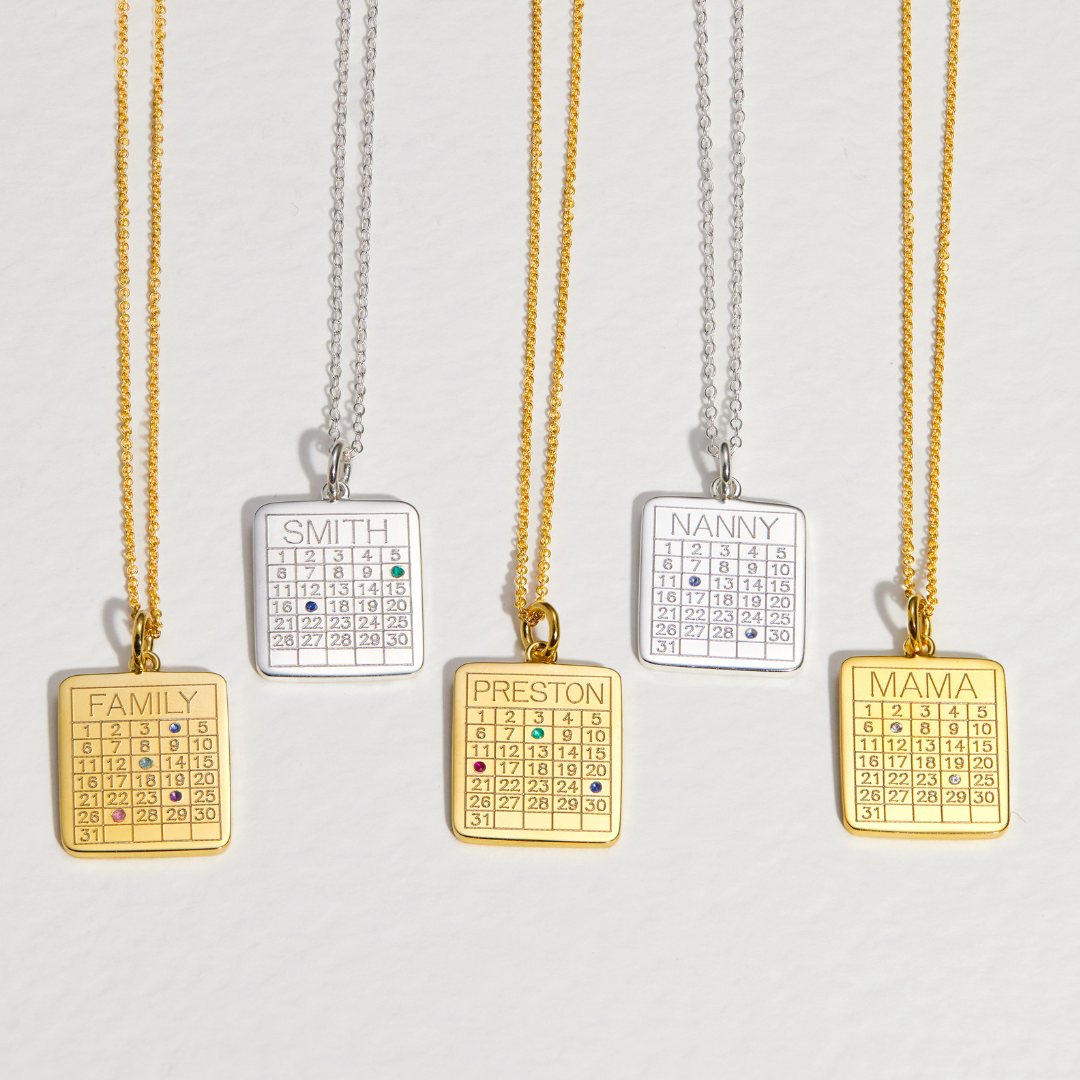 Silver Personalised Family Calendar Necklace