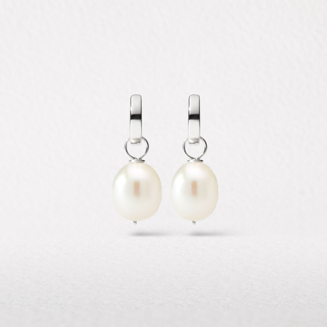 Made from solid sterling silver 925. Detachable freshwater pearls. Diameter: 1cm, pearl drop approx. 1.5cm.