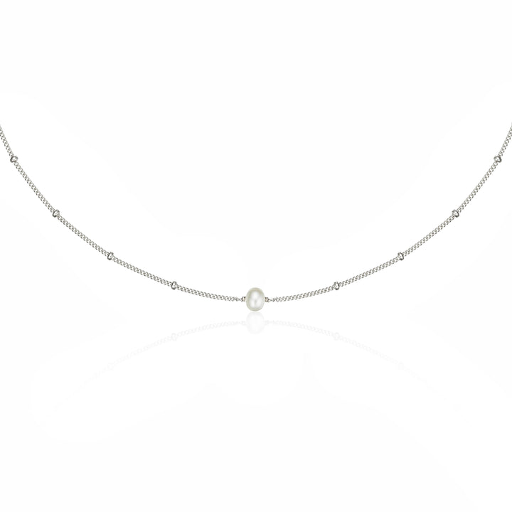 This Silver Satellite Single Pearl Choker by Lily & Roo offers a refined and timeless design, ideal for brides, bridesmaids, or as a beautiful everyday piece. The delicate freshwater pearl is set on a sleek satellite chain, creating a look of elegance and simplicity. Handmade with care in our London studio, this choker is a versatile addition to any jewelry collection, perfect for any occasion.
