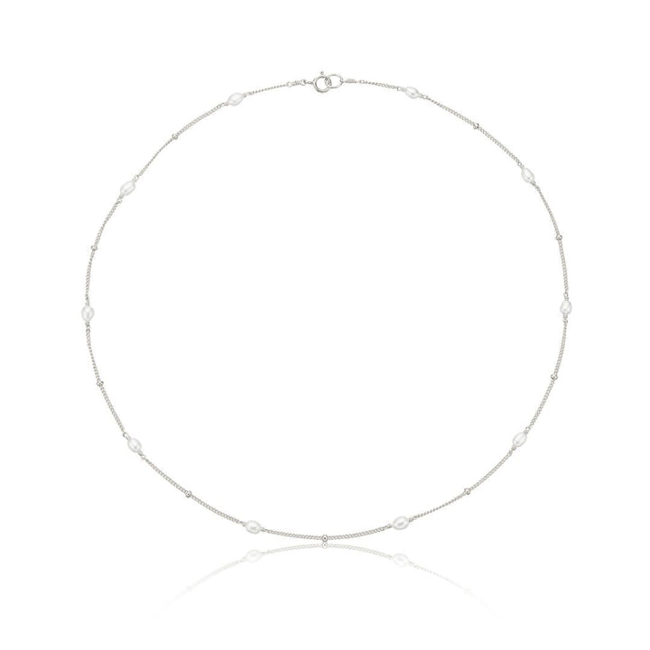 This Silver Seed Pearl Satellite Choker by Lily & Roo combines a contemporary satellite chain design with delicate freshwater seed pearls. Handmade in our London studio, this choker is perfect for brides and bridesmaids, or can be layered with other necklaces for a more casual, everyday style. Its elegant simplicity and versatile design make it the perfect gift for someone special.