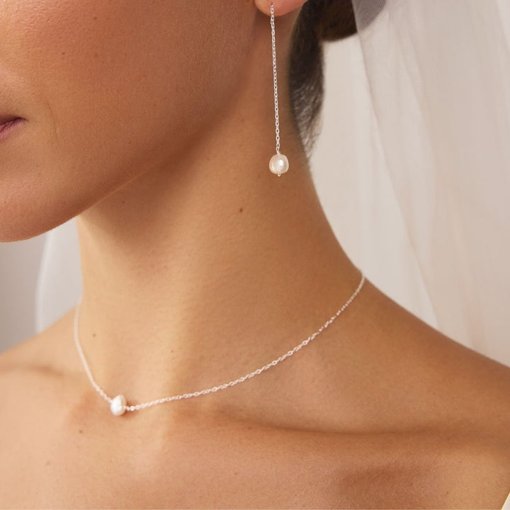 Handmade in 925 sterling silver, featuring a freshwater baroque pearl. Available in 925 sterling silver, 14K gold-filled, 14K rose gold-filled, solid 9K gold, or solid 9K white gold.