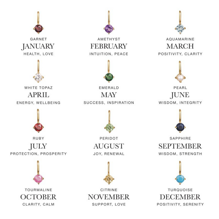 Solid sterling silver with a choice of birthstones, including Garnet, Amethyst, Aquamarine, Topaz, Emerald, Freshwater Pearl, Ruby, Peridot, Sapphire, Pink Tourmaline, Citrine, and Turquoise. Extendable 17cm-18cm chain for a perfect fit.