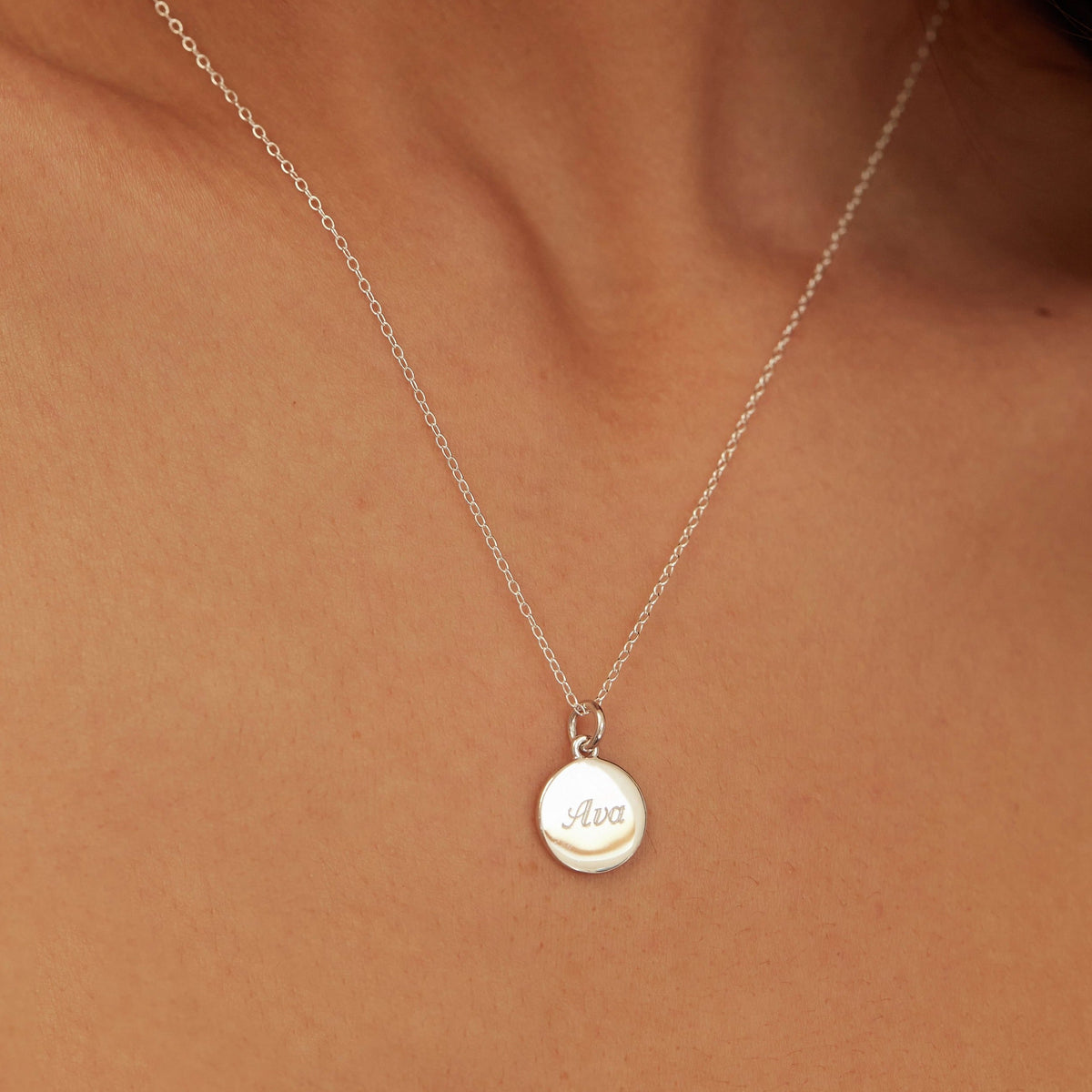 Made from solid sterling silver 925. Disc measures approximately 1.5cm in diameter. Engraving available with up to 20 characters.