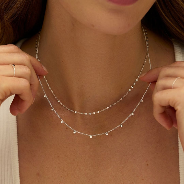 This Silver Square and Circle Charm Necklace by Lily & Roo offers versatile elegance, making it a must-have accessory for any season. Featuring a unique square and circle charm design, this necklace can be adjusted to 16-18 inches, ensuring it fits perfectly. The gold-plated finish adds a touch of sophistication, making it ideal for layering or wearing alone. Perfect for adding that extra bit of shine to any outfit, this piece is perfect for both casual and formal occasions.
