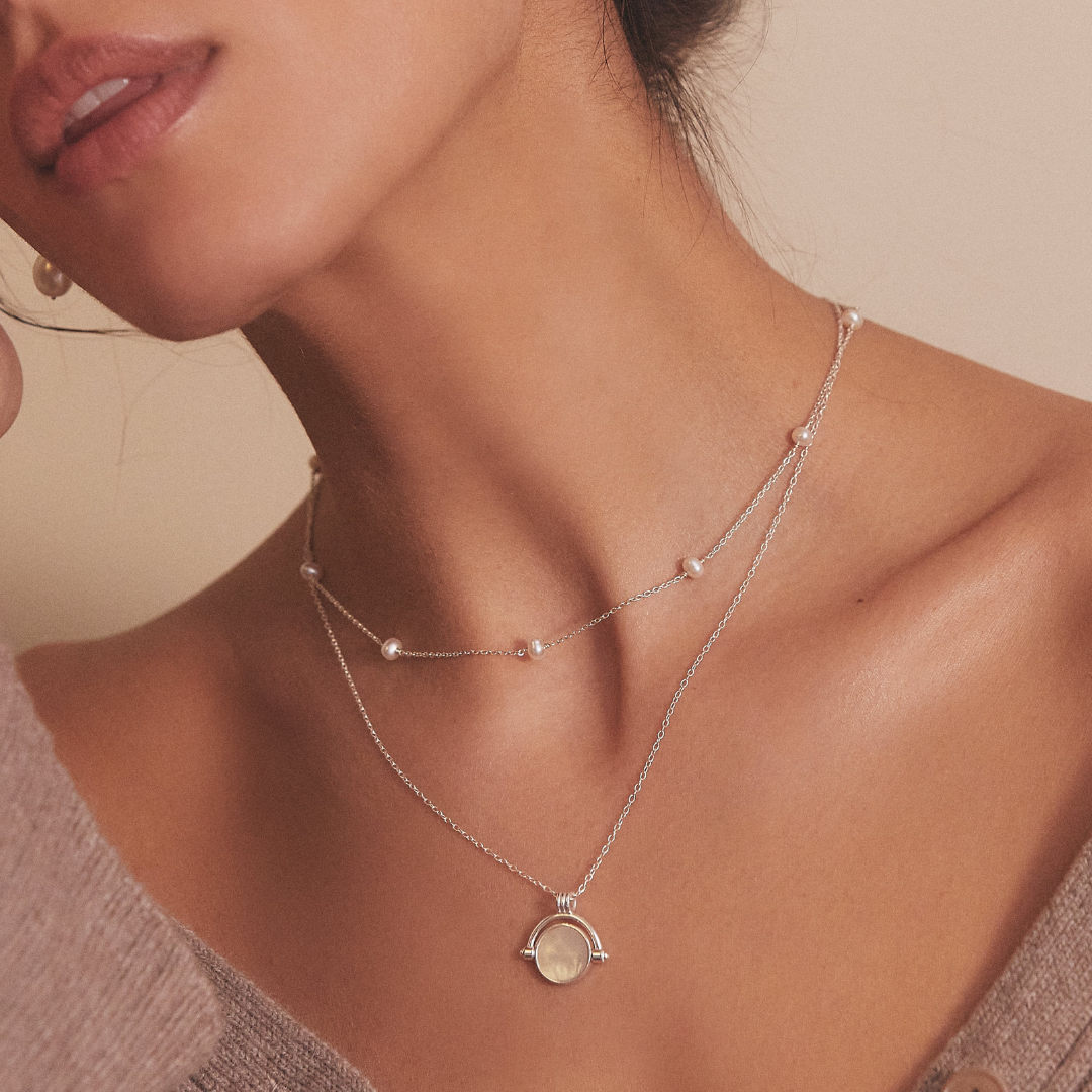 Handmade in solid sterling silver, featuring ten genuine freshwater pearls. Available in solid sterling silver and 14ct gold filled.