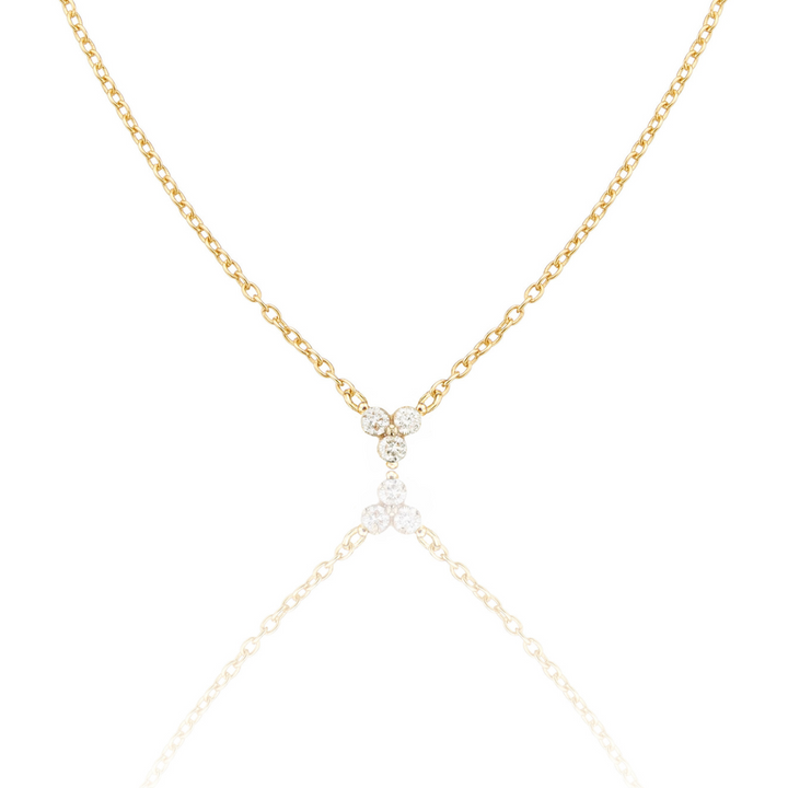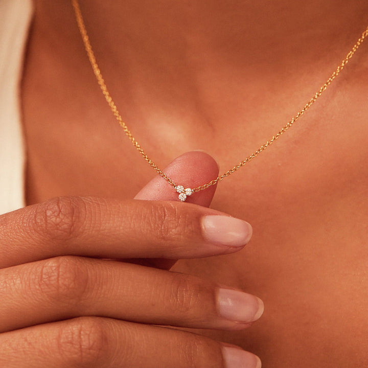 This Solid Gold Floating Diamond Cluster Necklace by Lily & Roo adds just the right amount of sparkle to any outfit. Featuring three genuine diamonds set in solid 9ct gold, this necklace offers timeless beauty and sophistication. The extendable solid gold chain allows for a perfect fit, adjustable from 16 inches (41cm) to 17 inches (43cm). This necklace is ideal for layering or wearing alone, making it a stunning gift for someone special.