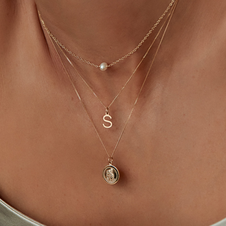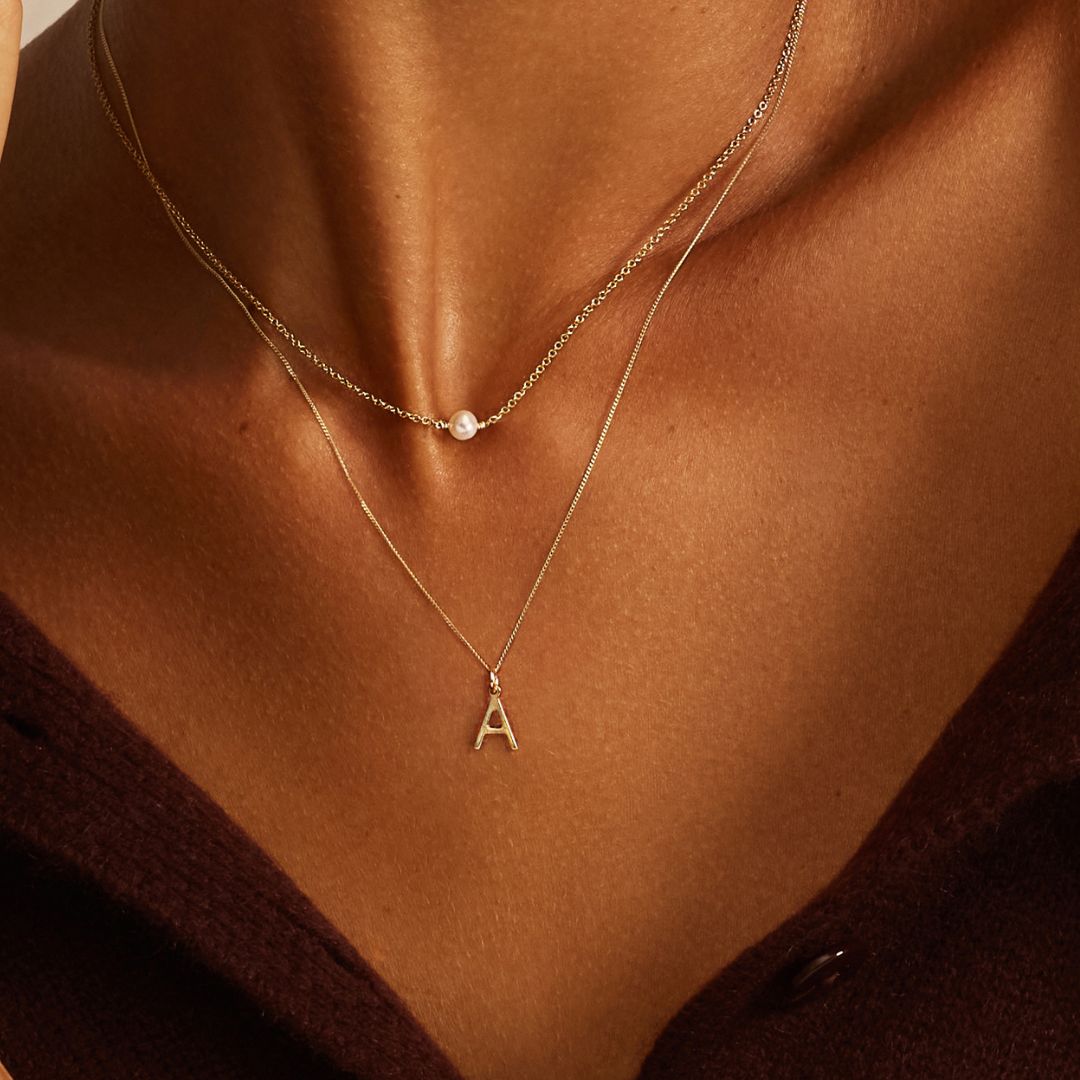 Solid Gold Initial Letter Necklace