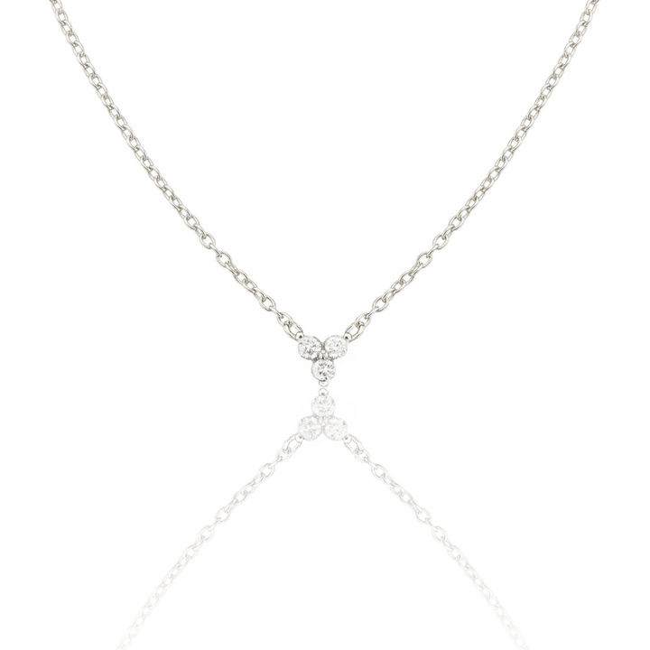 This Solid White Gold Floating Diamond Cluster Necklace by Lily & Roo adds a touch of refined sparkle to any look. Featuring three genuine diamonds set in solid 9ct white gold, this necklace is designed with a floating cluster of diamonds for a modern yet classic aesthetic. The extendable chain allows it to be worn at 16 inches (41cm) or extended to 17 inches (43cm), making it perfect for layering with other pieces. A beautiful gift for someone special, it combines timeless elegance with contemporary flair.