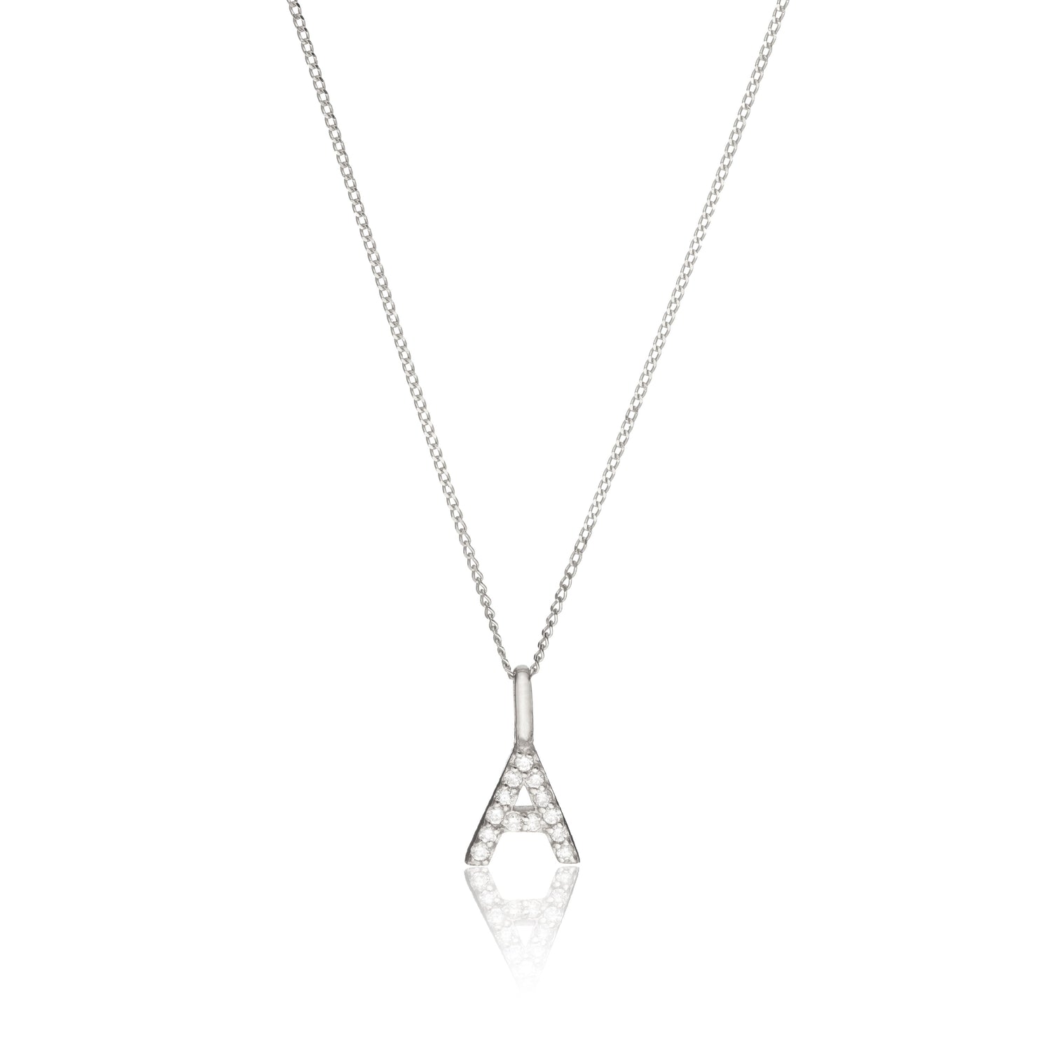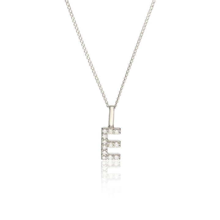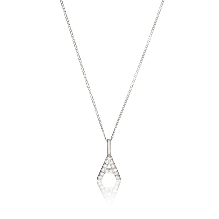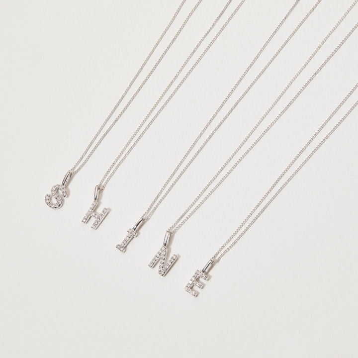 Solid White Gold Genuine Diamond Initial Letter Necklace