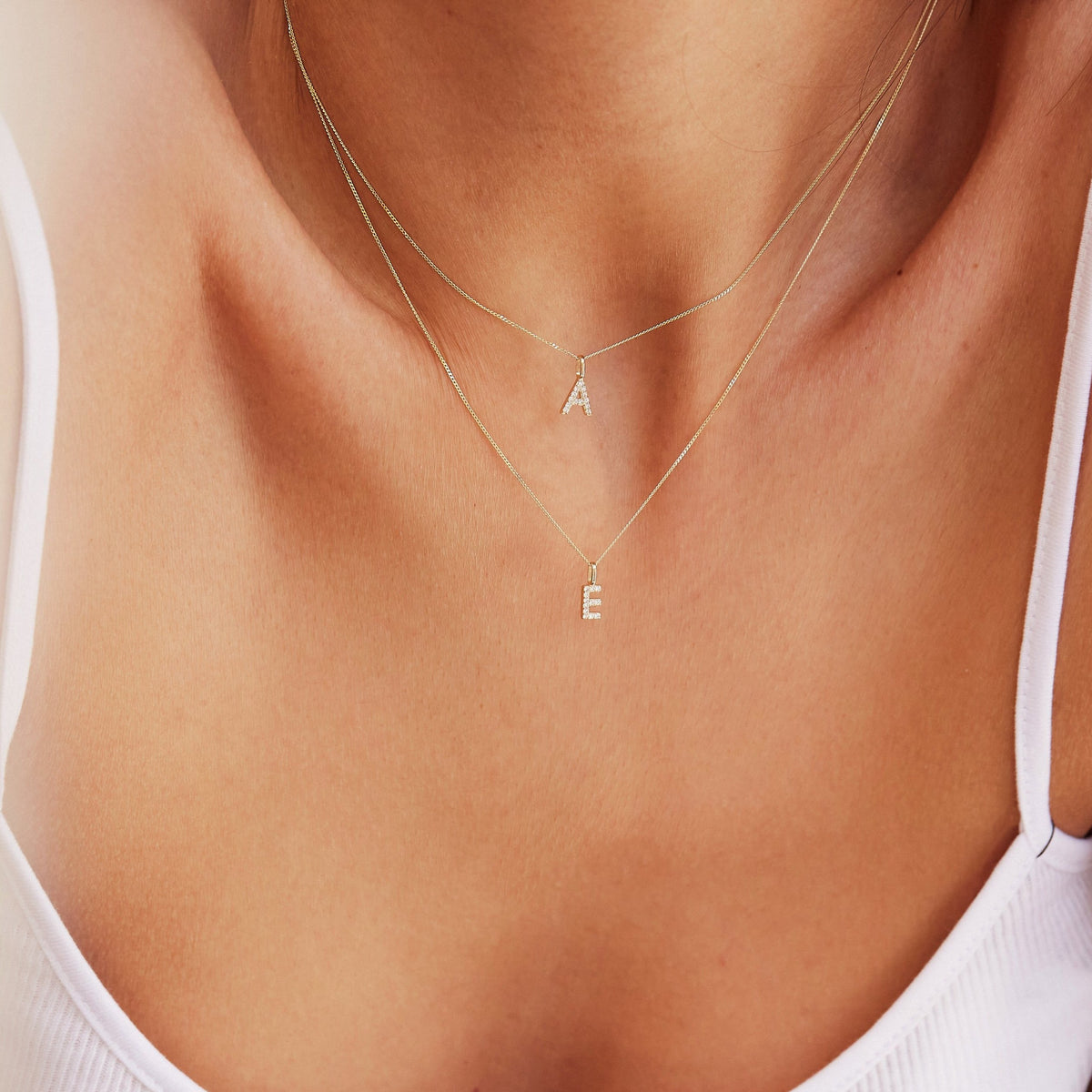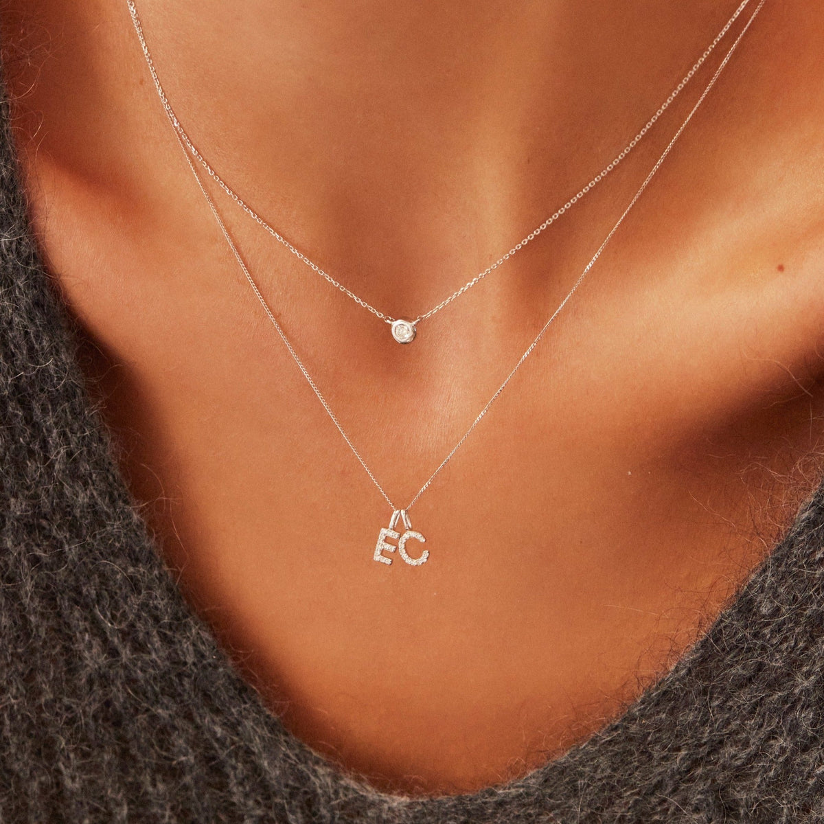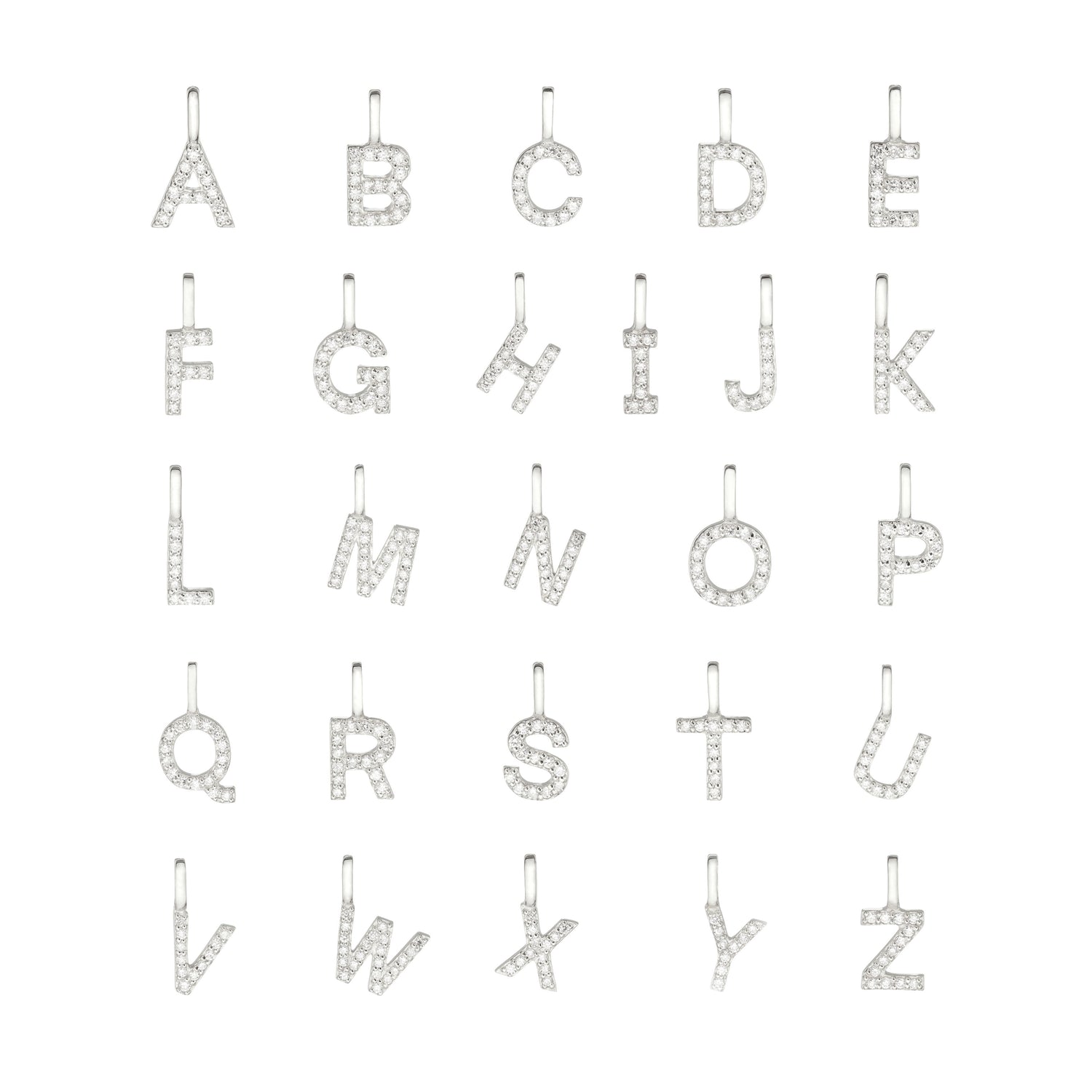 Solid White Gold Genuine Diamond Initial Letter Necklace