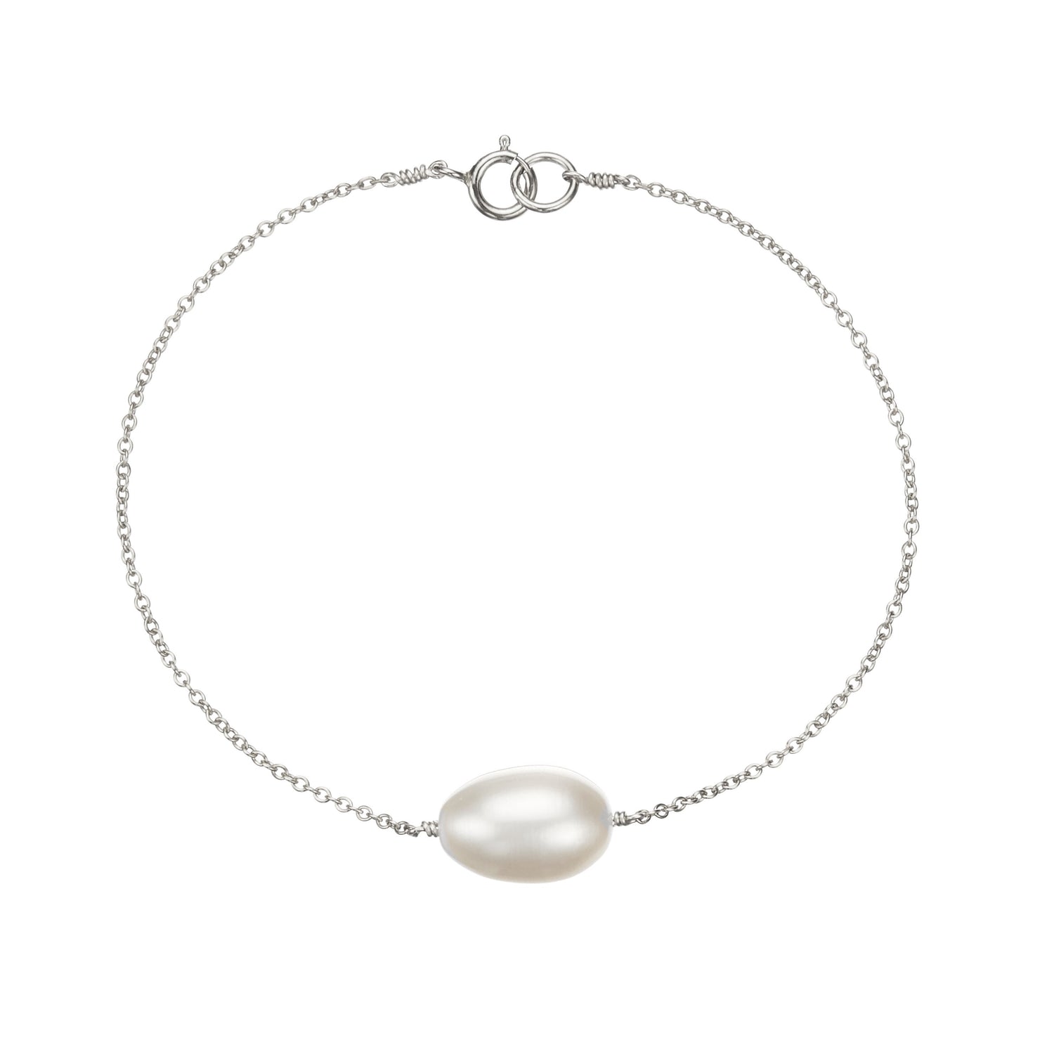 This Solid White Gold Large Pearl Bracelet by Lily & Roo is expertly crafted and adds a delicate touch to any outfit. Featuring a genuine freshwater pearl, this bracelet is perfect for brides or bridesmaids on their wedding day. The timeless design makes it versatile enough to wear for any special occasion or even as an everyday accessory.