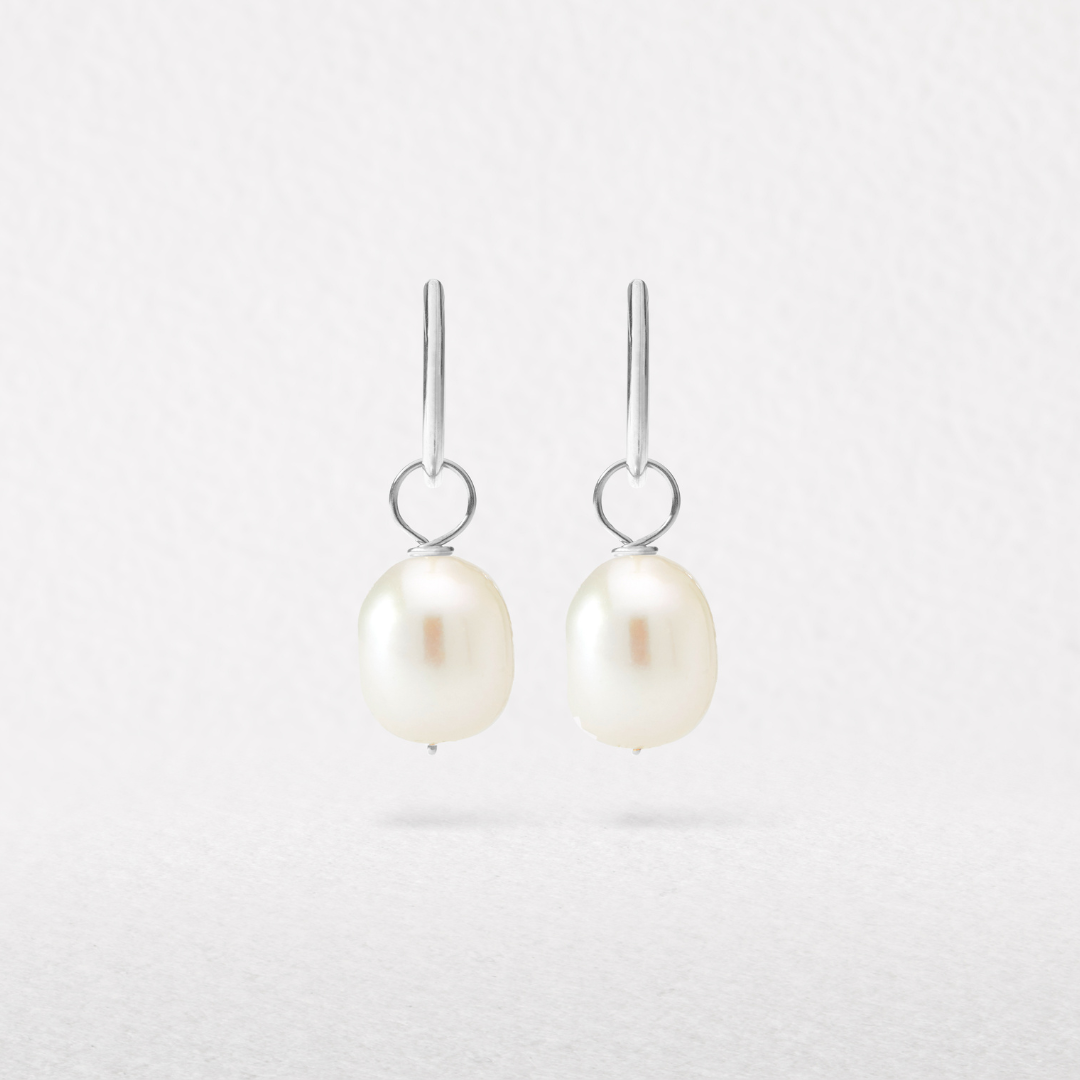 Handmade in solid 9ct white gold, featuring large freshwater pearls. Available in solid sterling silver, solid 9ct gold, and solid 9ct white gold.