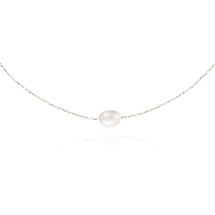 This Solid White Gold Large Single Pearl Choker by Lily & Roo is a classic piece that exudes elegance and sophistication. Handmade with care in our London workshop, this choker features a single, carefully handpicked freshwater pearl, each unique in shape and luster. Perfect for brides on their wedding day, this choker is also a timeless accessory that can be worn for any special occasion.