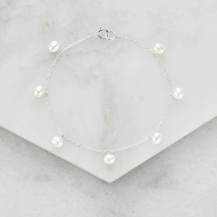 This Solid White Gold Pearl Drop Bracelet by Lily & Roo is a delicate and elegant addition to any jewelry collection. Featuring genuine freshwater pearls, this bracelet is a perfect gift for brides, bridesmaids, or anyone looking to add a touch of sophistication to their ensemble. Handmade in our London studio, this bracelet is a timeless piece that can be worn on its own or paired with other accessories.