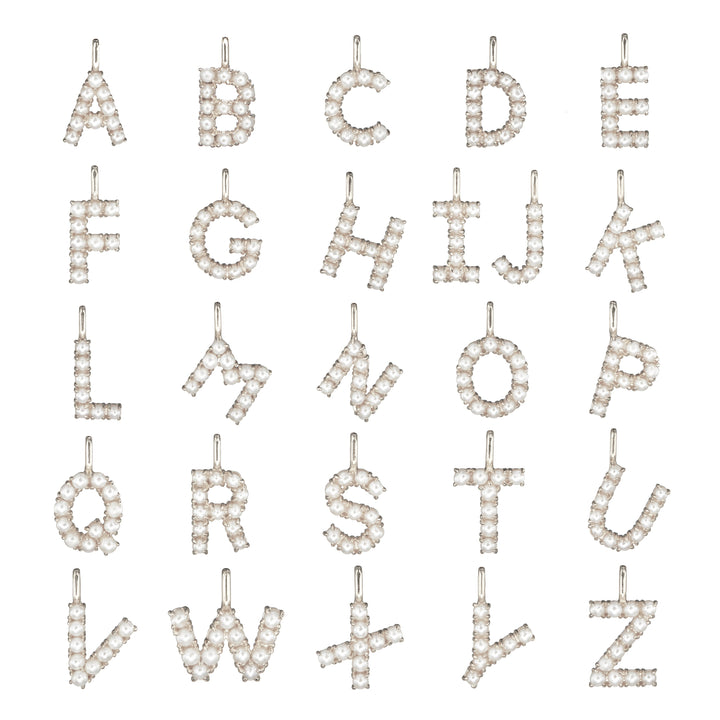Solid White Gold Pearl Individual Initial Charm
