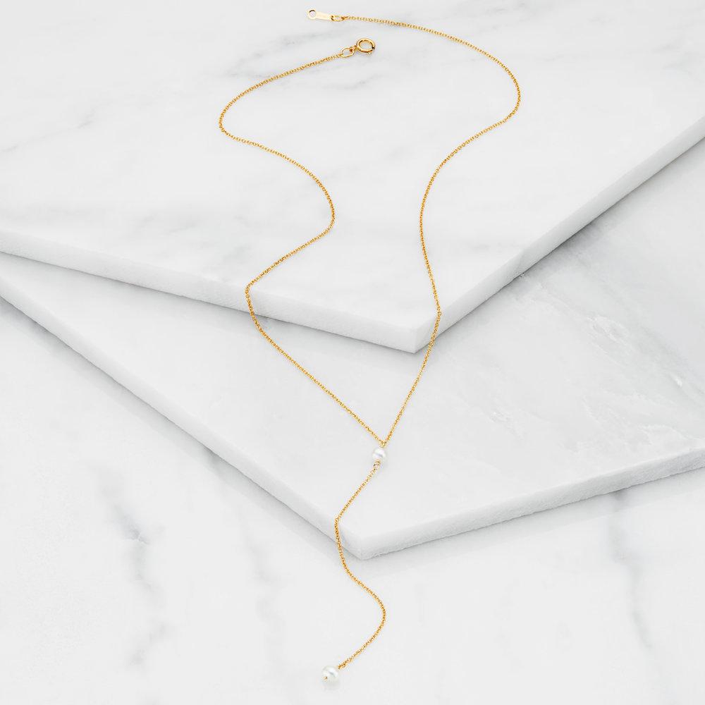 This Solid White Gold Pearl Lariat Necklace by Lily & Roo is an elegant and delicate accessory that will complete any outfit. Handmade with love in our London studio, this lariat necklace features ethically sourced freshwater pearls, offering a timeless, sophisticated look. Perfect for brides or bridesmaids, this necklace is an ideal gift for a wedding day or any special occasion.