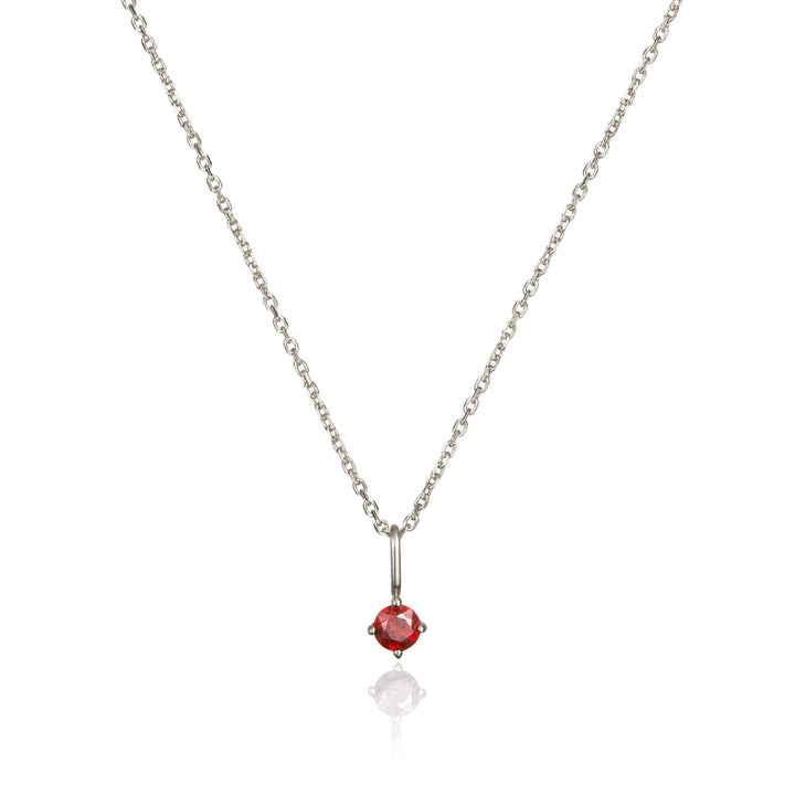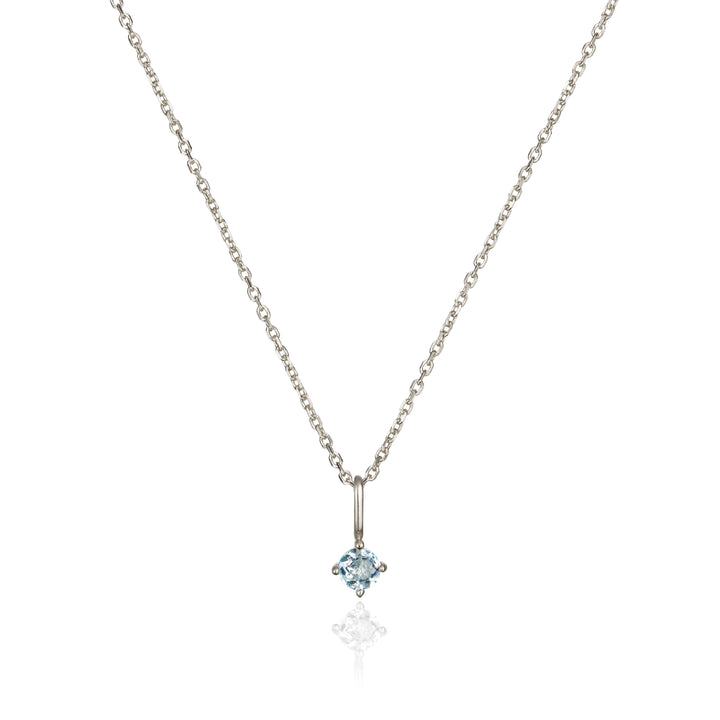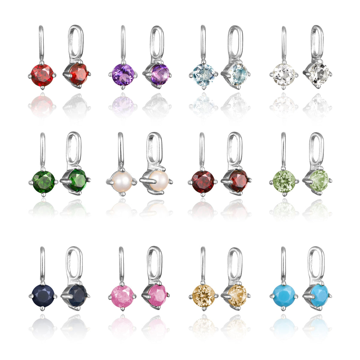 Solid 9ct white gold with a choice of birthstones, including Garnet, Amethyst, Aquamarine, White Topaz, Emerald, Freshwater Pearl, Ruby, Peridot, Sapphire, Pink Tourmaline, Citrine, and Turquoise. Available in 16-inch, 18-inch, or 20-inch chain lengths. Additional birthstone charms can be added.
