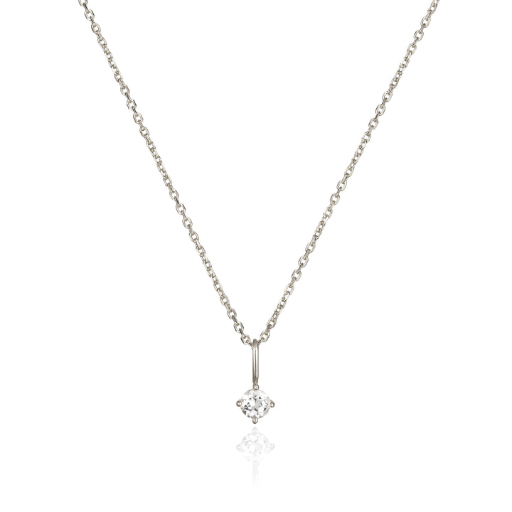 This Solid White Gold Small Birthstone Pendant Necklace by Lily & Roo is a delicate and meaningful piece, perfect as a birthday gift or a cherished keepsake. Featuring a dainty birthstone of your choice, this elegant necklace can be worn alone for a subtle touch of color or layered with initial necklaces for a more personalized look. With an adjustable chain length, it offers versatility in styling, while the option to add additional gemstone charms enhances its sentimental value. A timeless treasure designed to celebrate special moments.