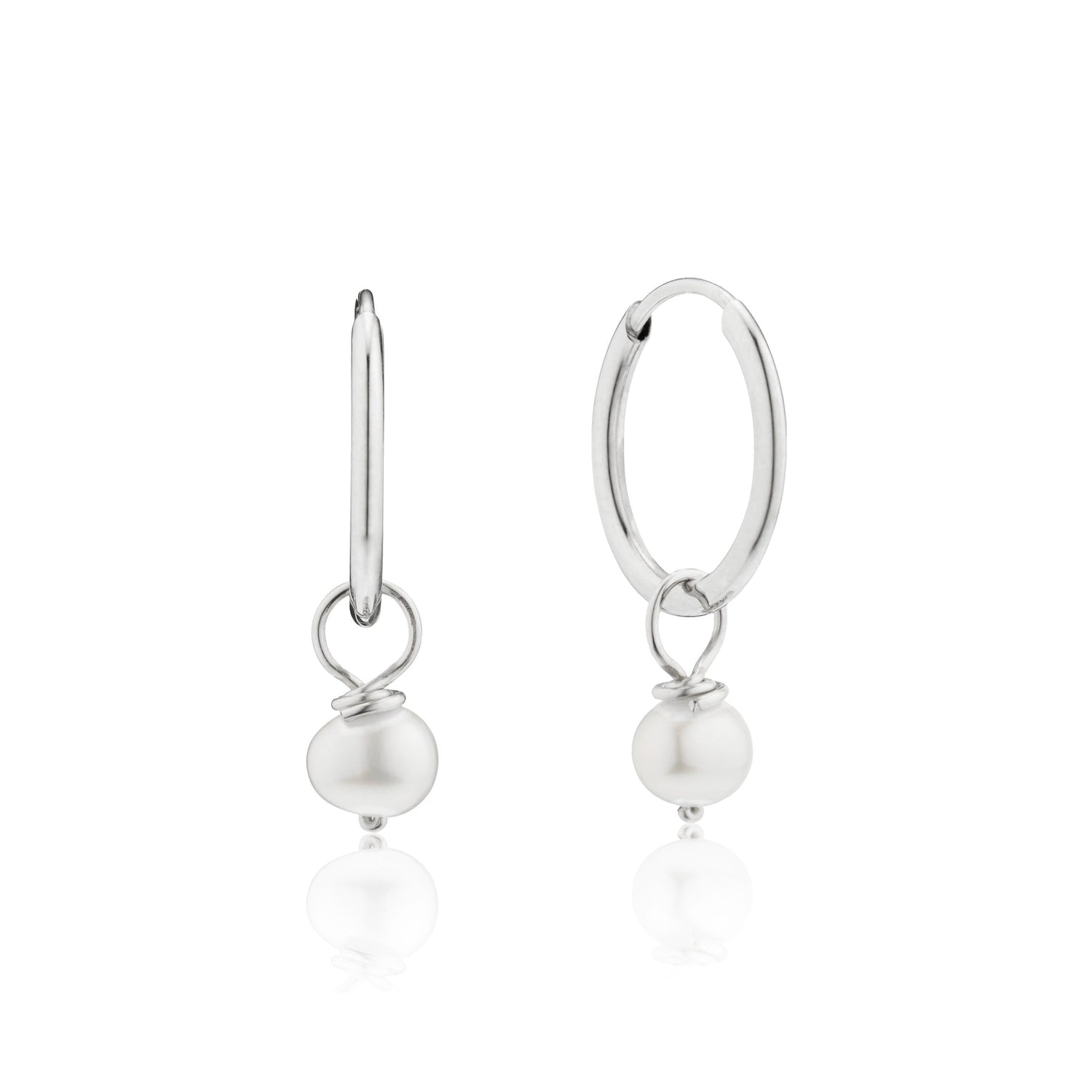 Solid White Gold Small Pearl Drop Hoop Earrings