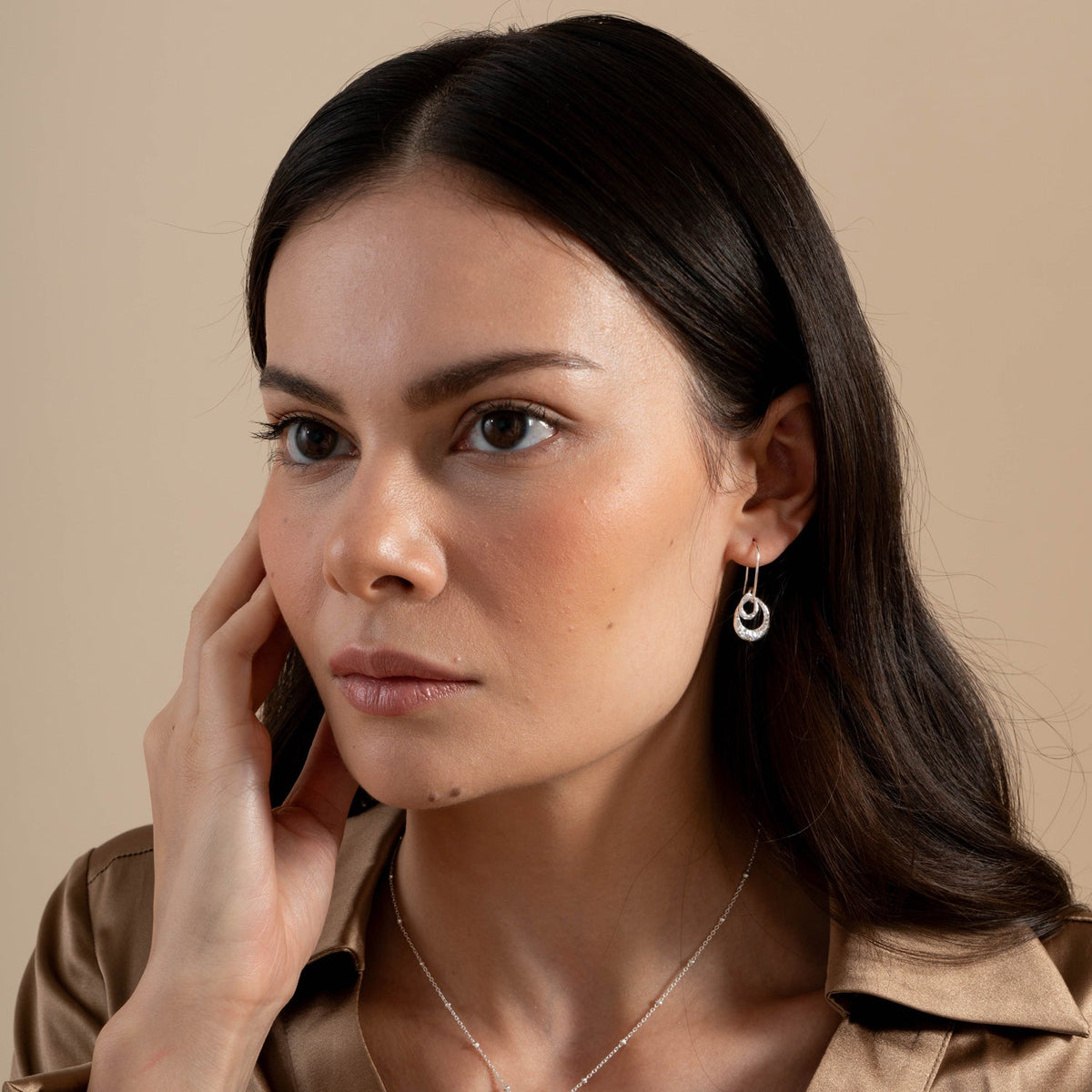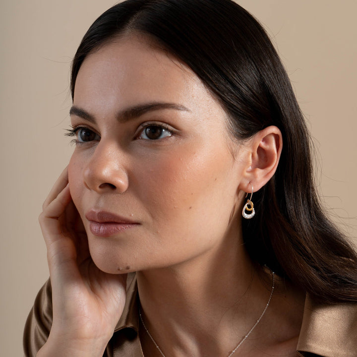 These Entwined Double Oval Drop Earrings by Dower & Hall feature two interlocking ovals suspended together on ear wires, embodying the organic design of the collection. These earrings are available in sterling silver or with a luxurious yellow gold vermeil finish.