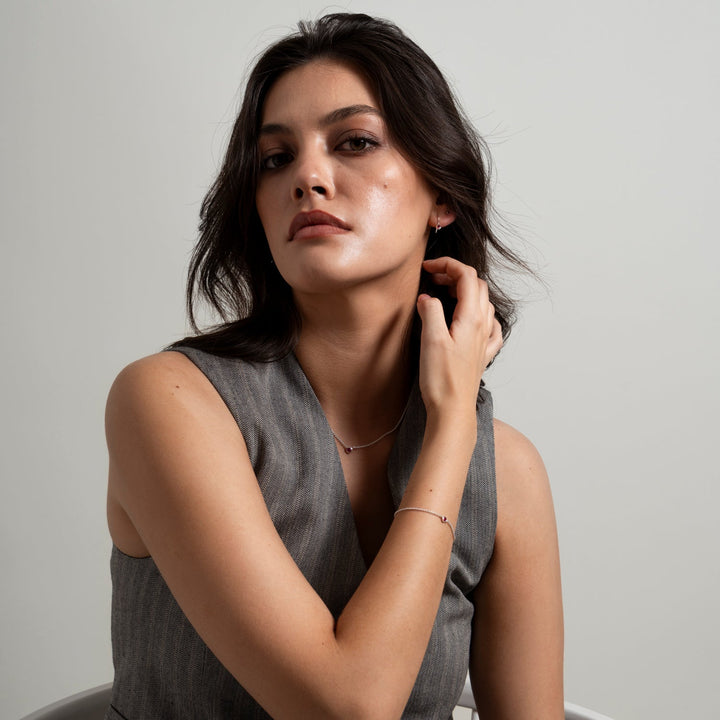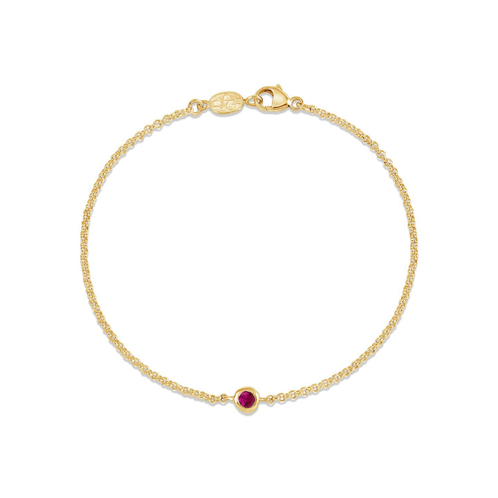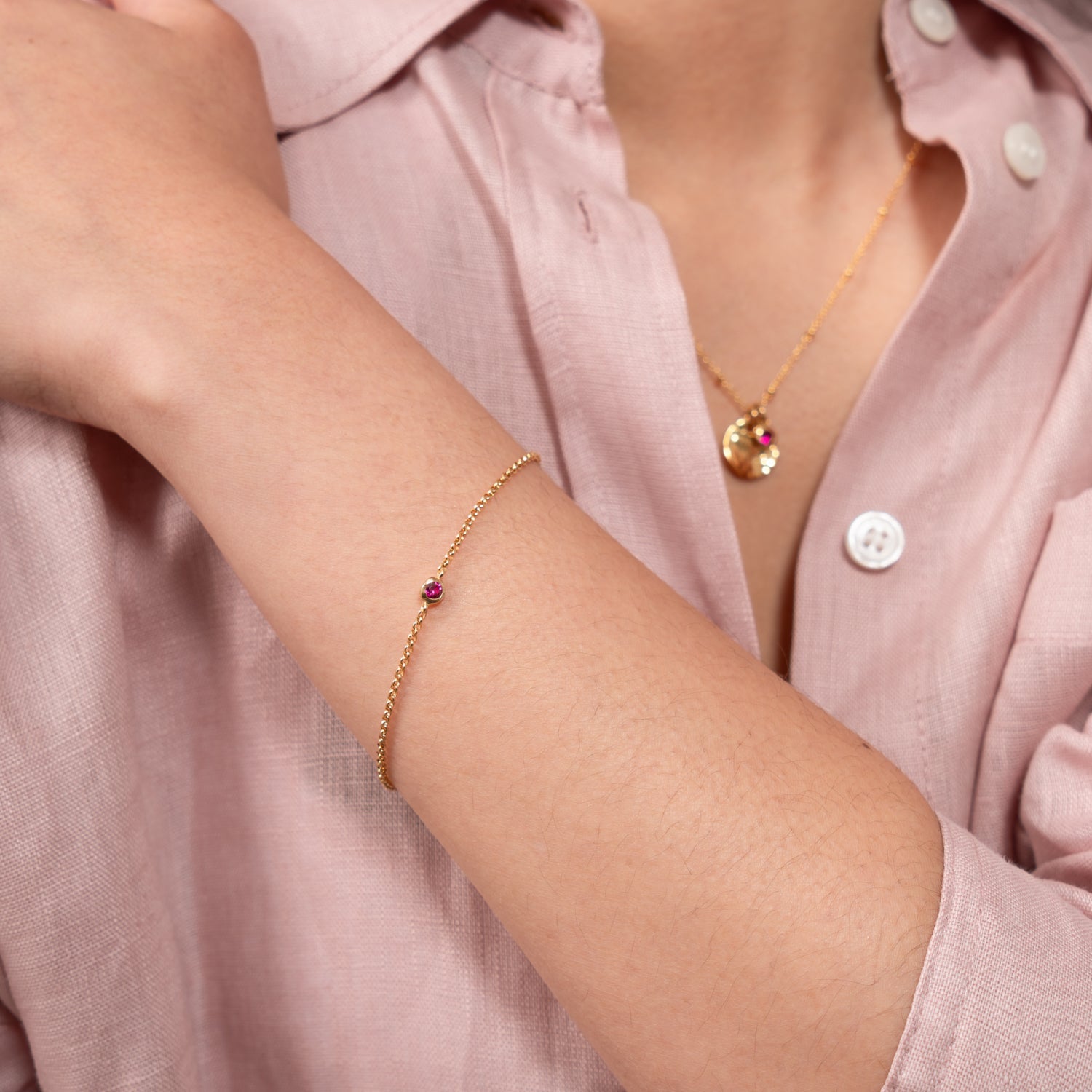 Handcrafted in sterling silver or with 18ct yellow gold vermeil finish. Ruby (3mm). Adjustable length: S - 7 inches, M - 7.25 inches, L - 7.50 inches.