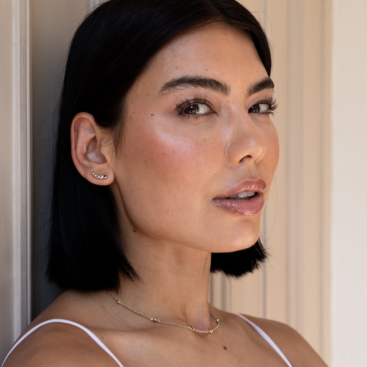 These Blue Sapphire Dewdrop Ear Climbers by Dower & Hall offer a twist on traditional designs. These sterling silver Twinkle ear climbers are designed to be worn up the earlobe, set with deep blue sapphires that enhance the luxe look of the earrings. Perfect for a modern, elegant style, they add a sophisticated touch to your collection.