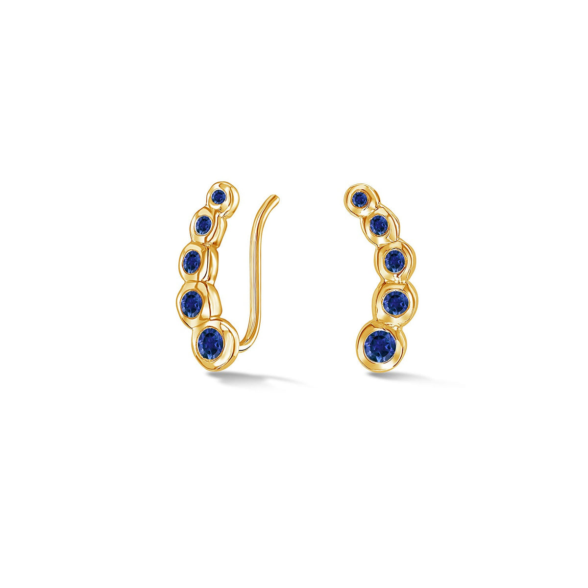 Handcrafted in sterling silver with 18ct yellow gold vermeil finish, featuring blue sapphires in sizes 1.25mm to 2.5mm. Climber size: 14 x 4mm.