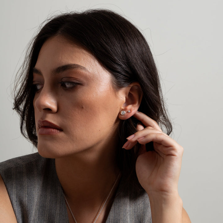 These 3mm White Sapphire Orissa Studs by Dower & Hall are part of the Orissa range, featuring white sapphire gemstones held in the signature four-claw lotus design setting. These elegant studs are a timeless addition to any collection and perfect for everyday wear.