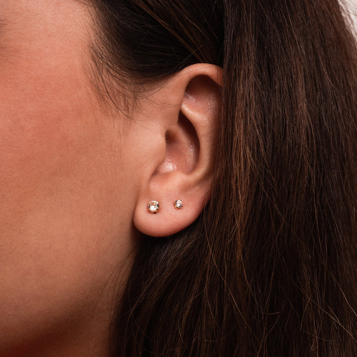 These 4mm White Topaz Orissa Studs by Dower & Hall are part of the Orissa range, featuring sparkling white topaz gemstones set in the brand's signature four-claw lotus design setting. These studs add an elegant touch to any outfit, making them a timeless addition to your collection.