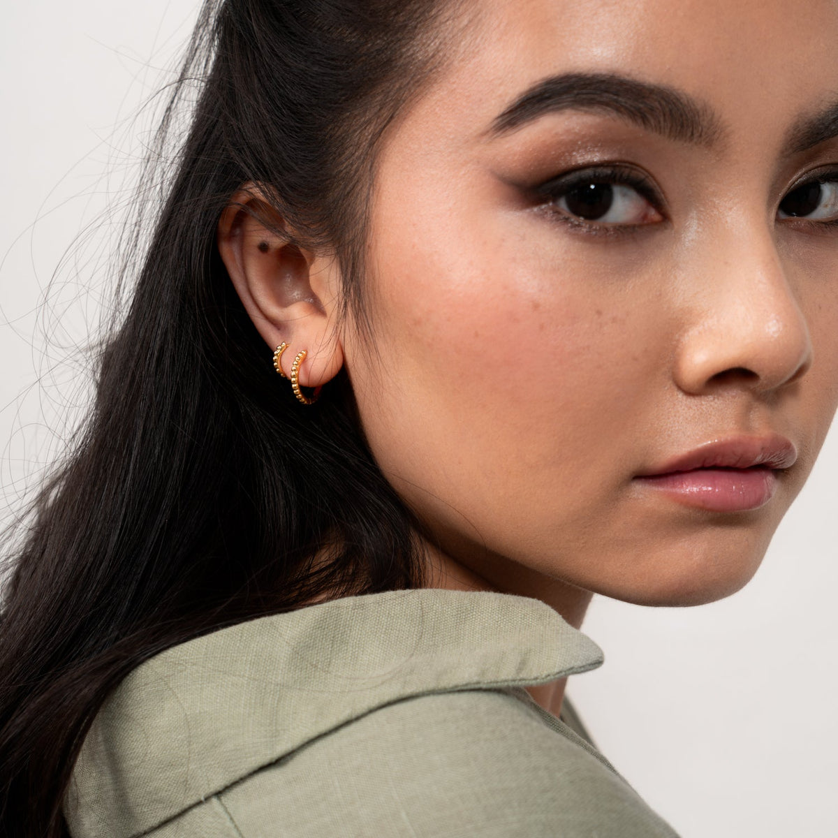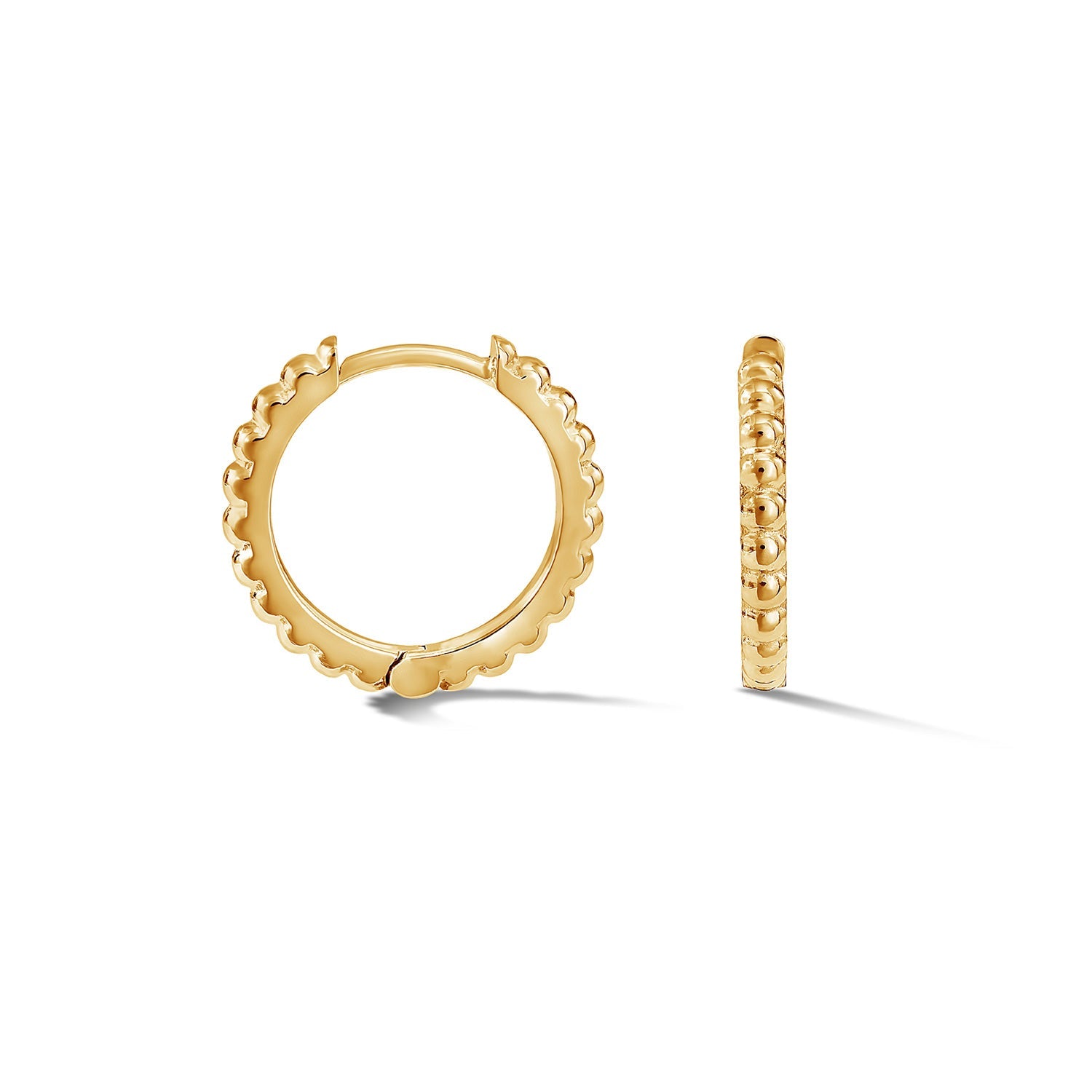 Available in sterling silver or 18ct yellow gold vermeil. Featuring the signature Dotty texture with hoop size - 15mm. Finished with a hinged clasp for secure wear.