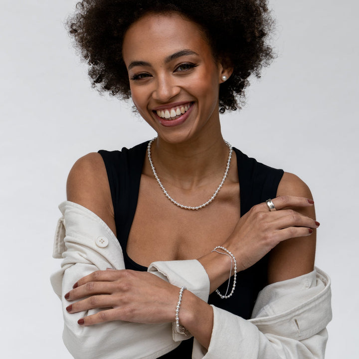 This Wide Waterfall Ring by Dower & Hall is an everyday statement piece, with its extra-wide, tactile silver surface that mimics the ripples of flowing water. Its minimalist yet bold design makes it perfect worn alone or stacked with other rings to elevate your style.