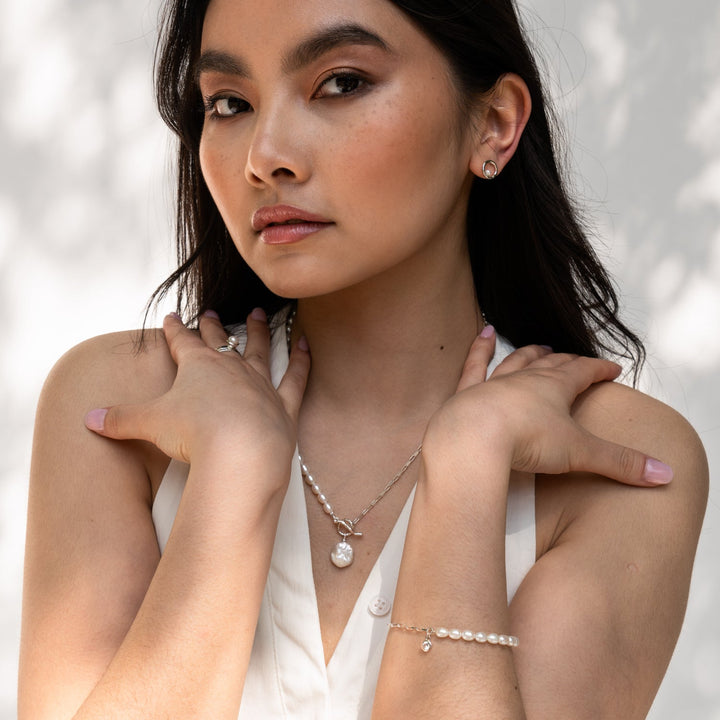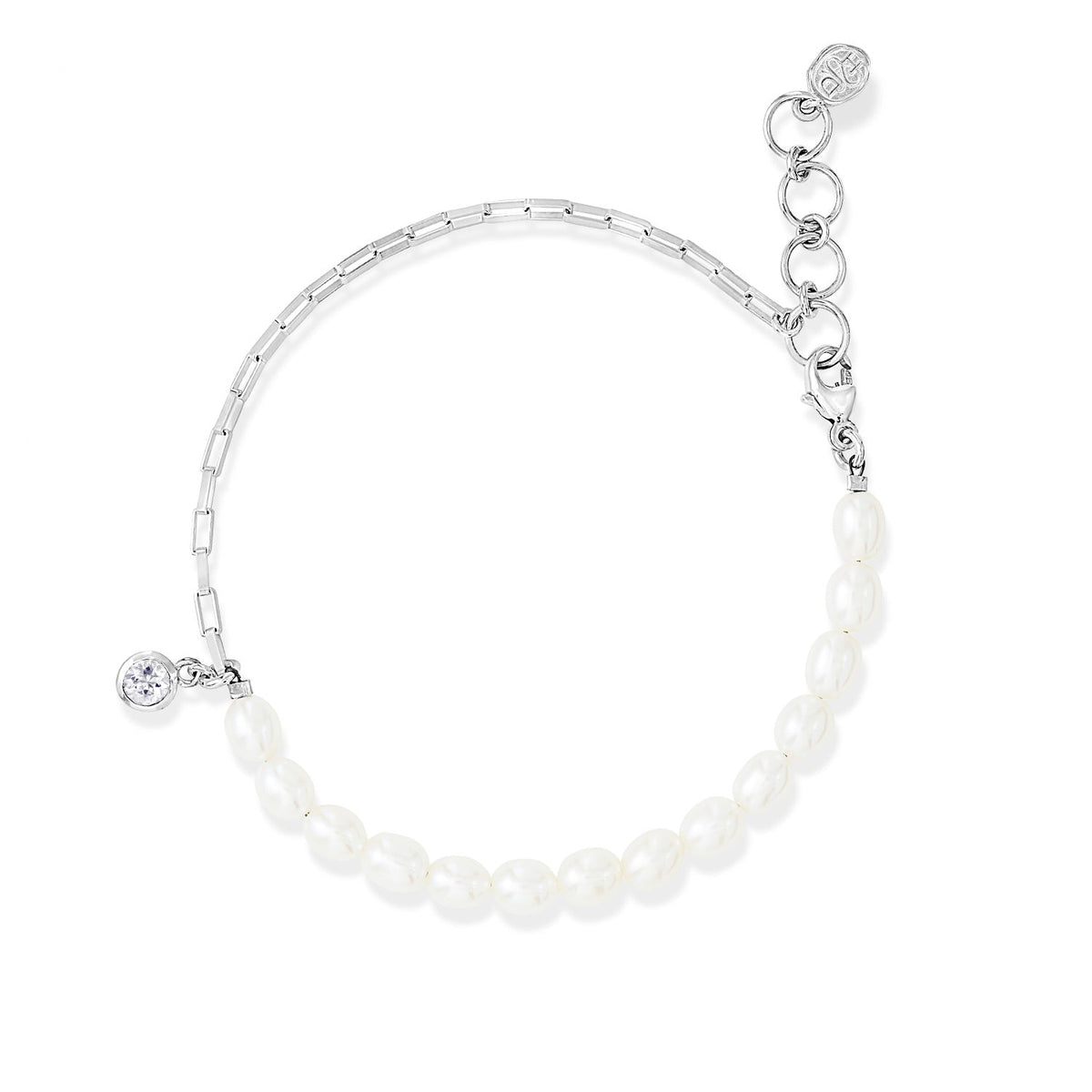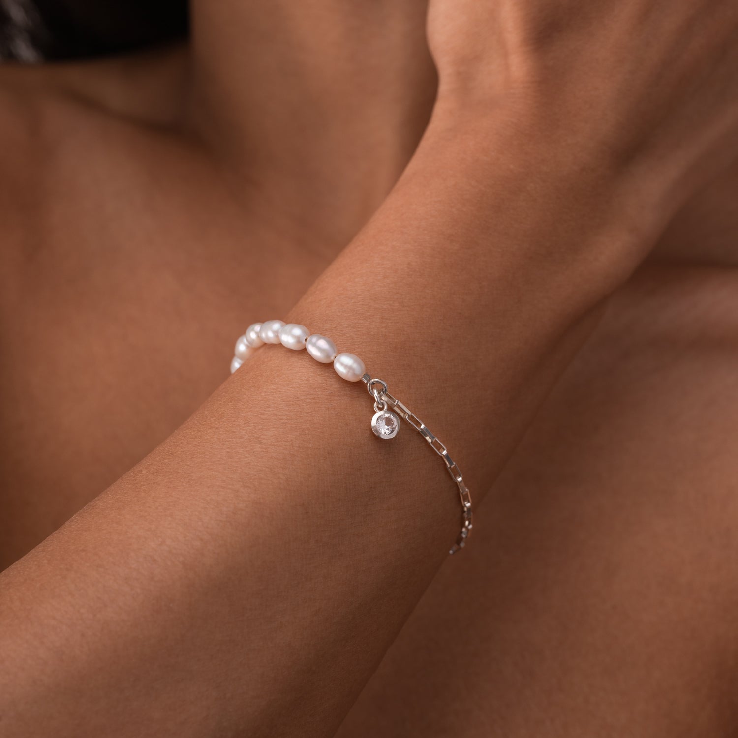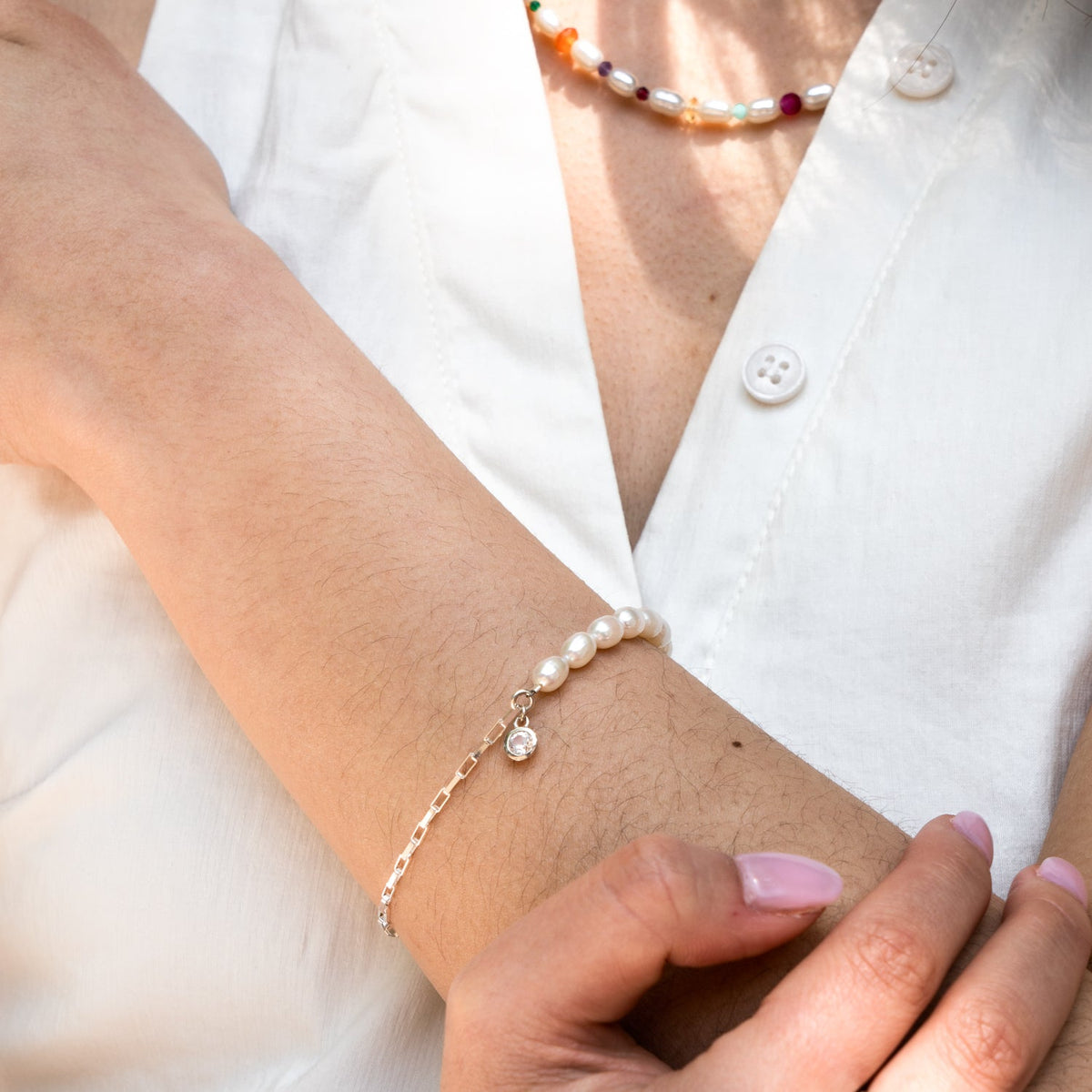 Luna White Pearl, Chain & White Topaz Drop Bracelet