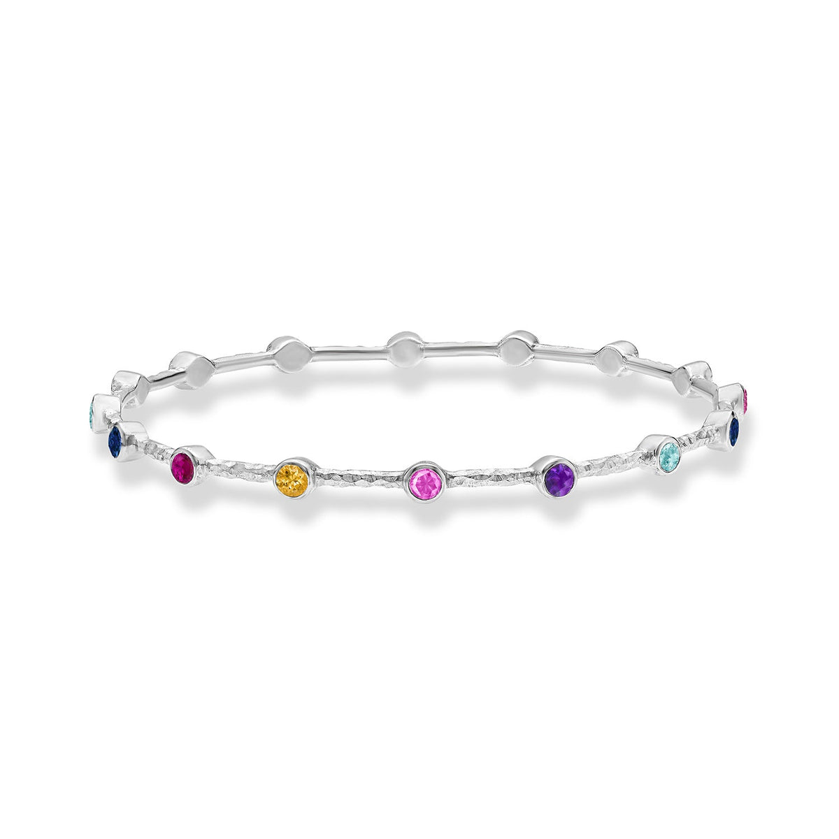 This Round Multi-Coloured Gemstone Array Bangle by Dower & Hall is a vibrant piece that brings together a rainbow of gemstones. Crafted in sterling silver with a rich yellow gold vermeil finish, the bangle is set with amethyst, blue topaz, citrine, garnet, iolite, and pink tourmaline gemstones, each measuring 3mm. This bangle adds a stunning pop of color to any neutral outfit, whether worn alone or stacked.
