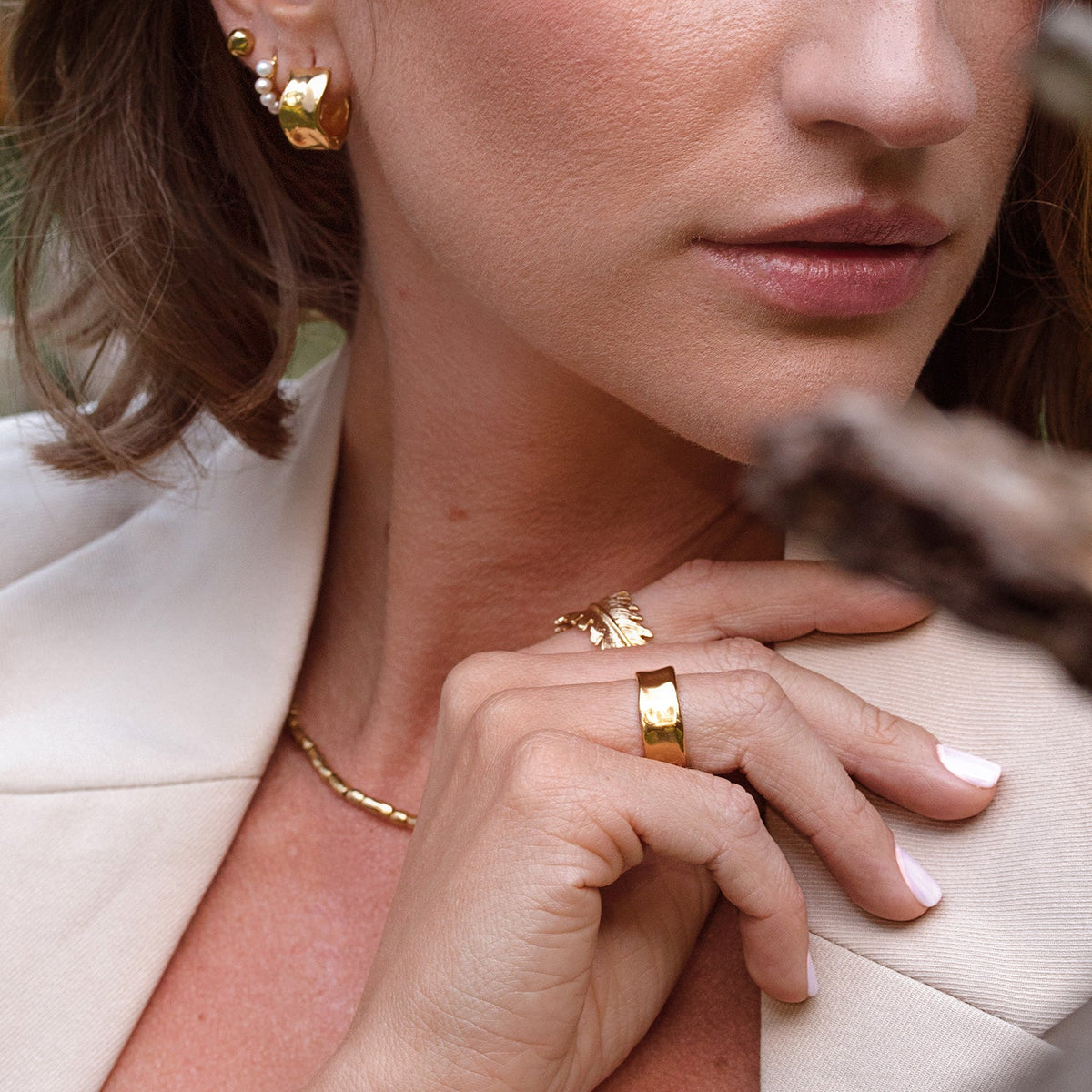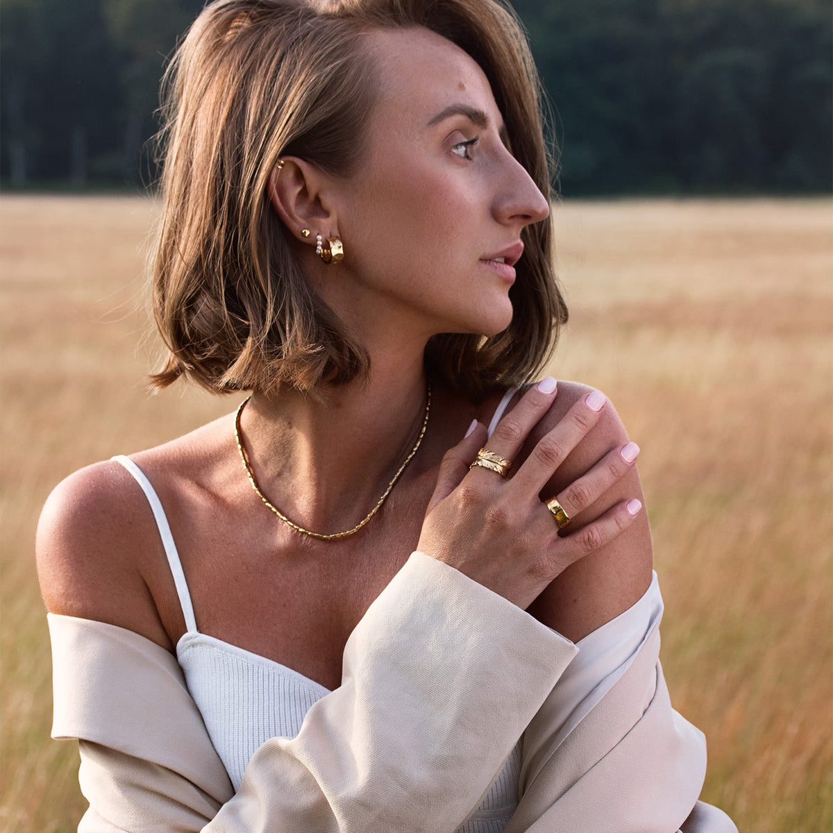 Made from sterling silver with 18ct yellow gold vermeil finish. Hoop size: 8mm x 15mm.