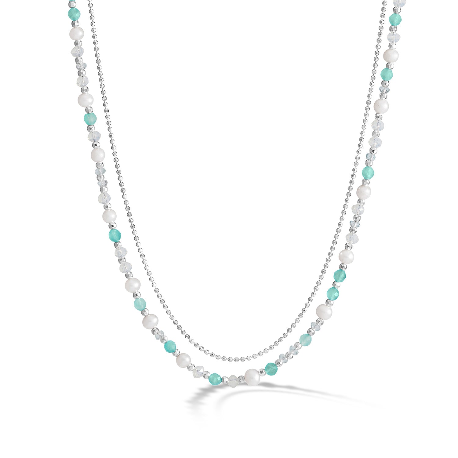 Made from sterling silver with 18ct yellow gold vermeil finish, featuring apatite, blue topaz, moonstone, and white pearl.