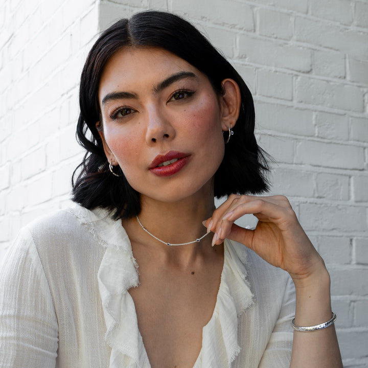 These Blue Sapphire Dewdrop Earrings by Dower & Hall are simple yet elegant. The dainty sterling silver earrings are set with 3mm blue sapphires, adding a delicate pop of color. With a static earwire design, these earrings are perfect for both everyday wear and special occasions. Pair them with a matching pendant or stack them with other Twinkle rings for a coordinated look.