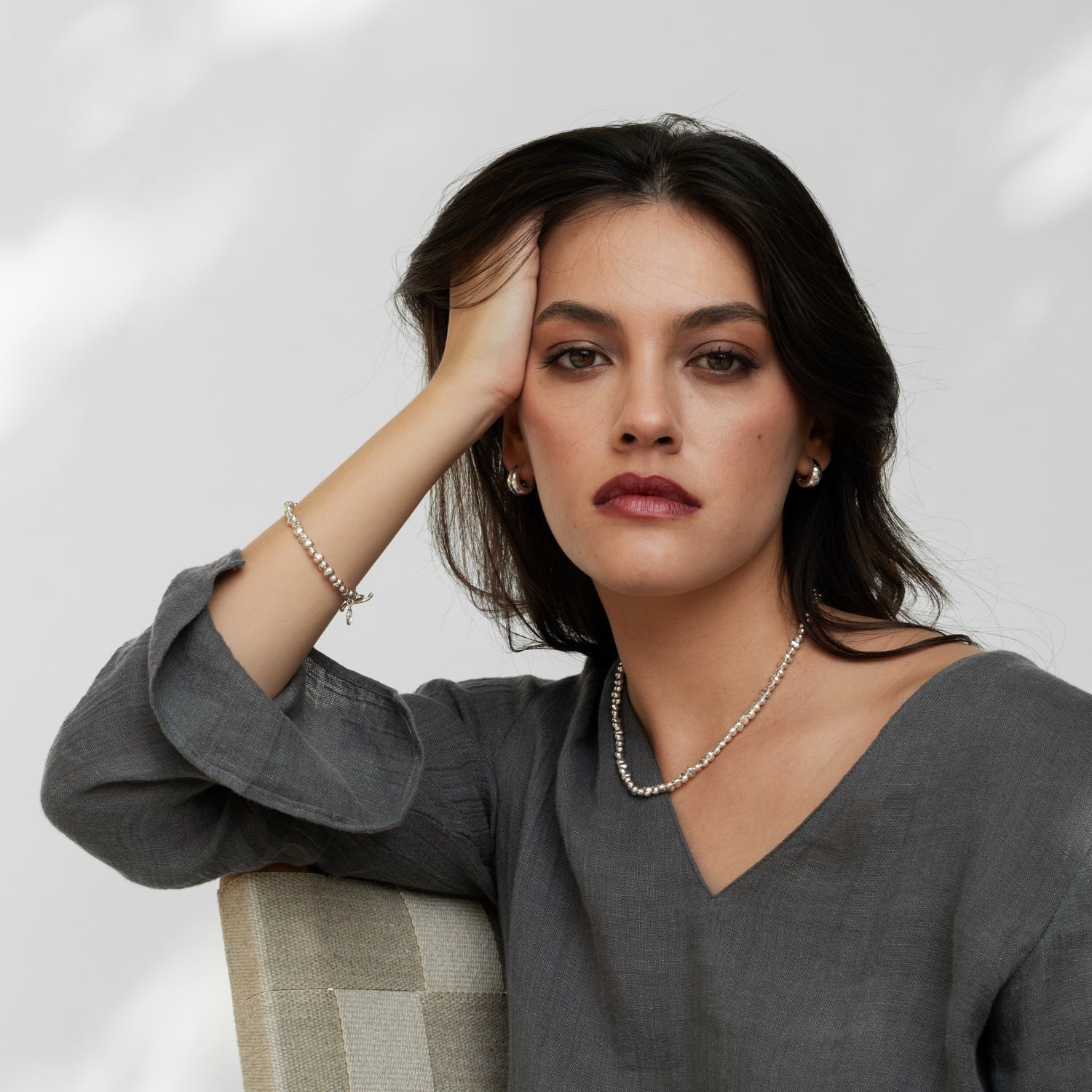 Handcrafted in sterling silver with medium-sized nuggets (approx. 5mm x 4.5mm). Total length: 19cm/7.5 inches. Finished with a signature hammered circle and t-bar clasp. Available in sterling silver or 18ct yellow gold vermeil finish.