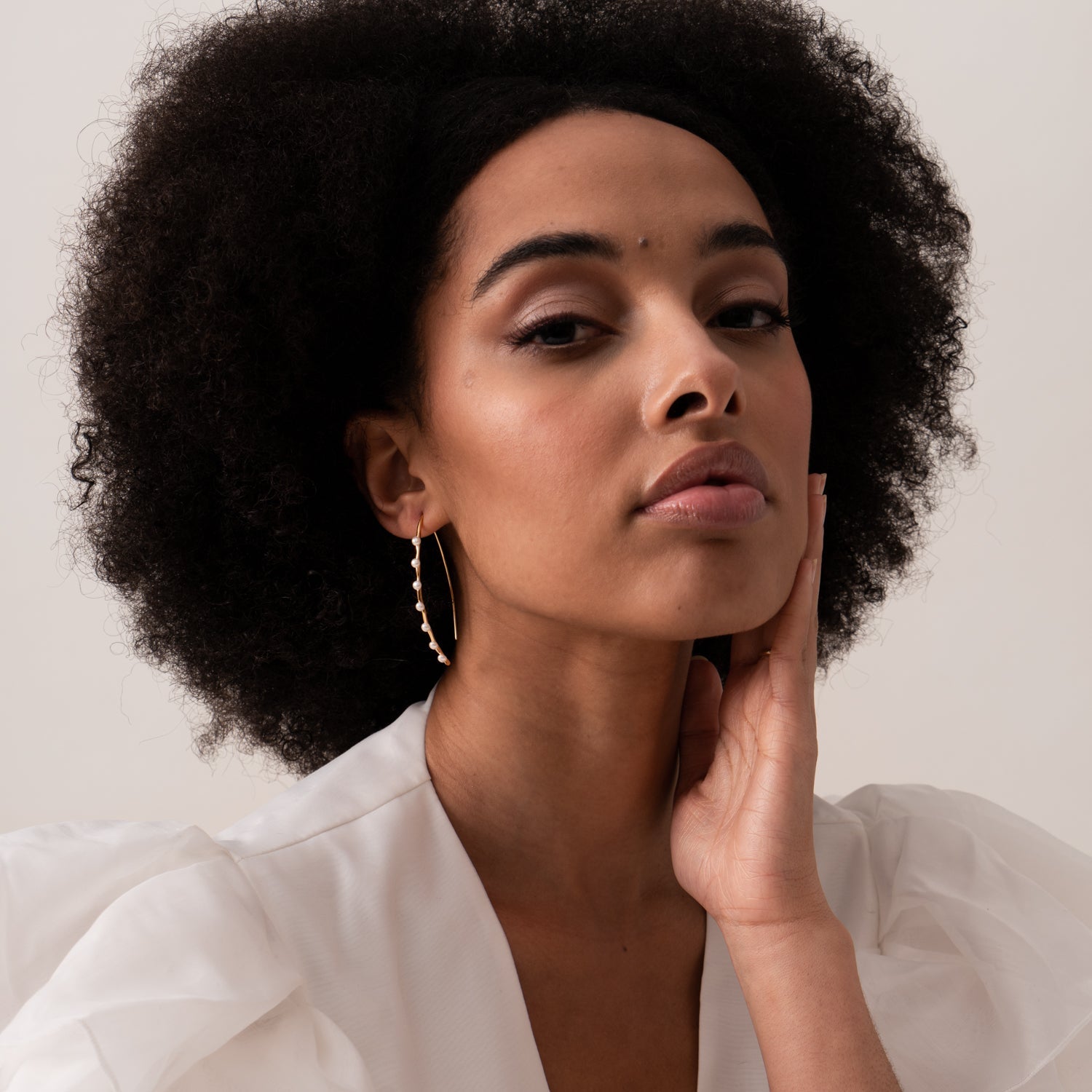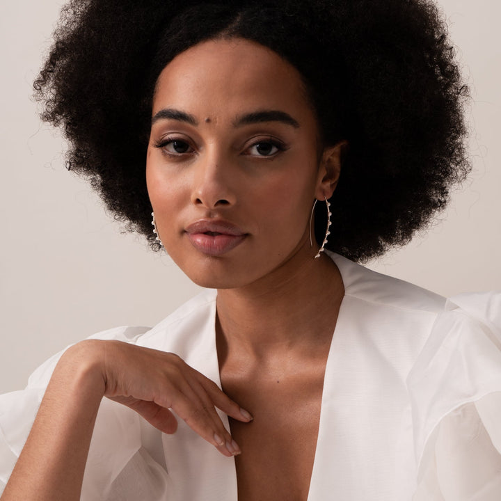 Handcrafted in sterling silver with white freshwater pearls (3.5mm). Total length: 58mm. Available in sterling silver or 18ct yellow gold vermeil finish.