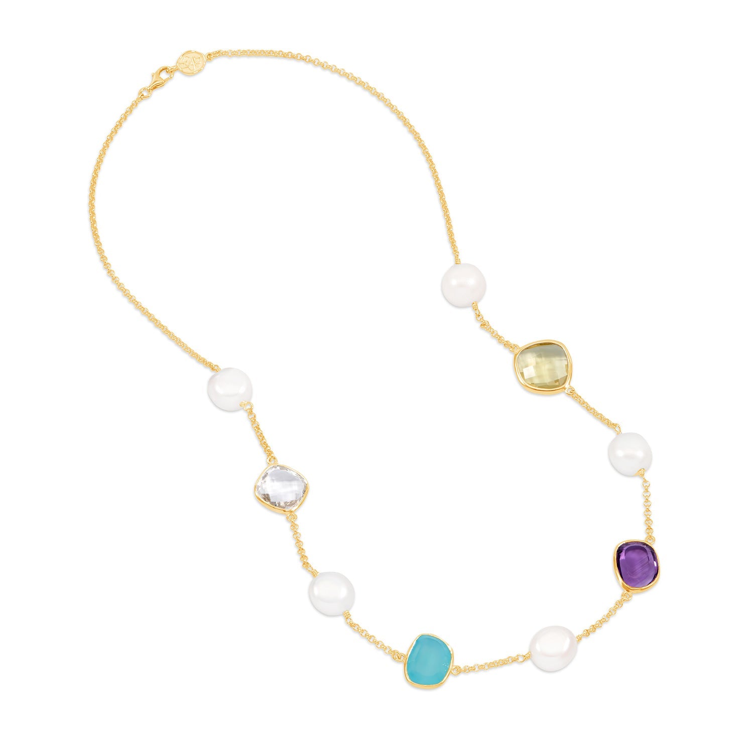 Candy Gemstone & Baroque Pearl Pebble Necklace