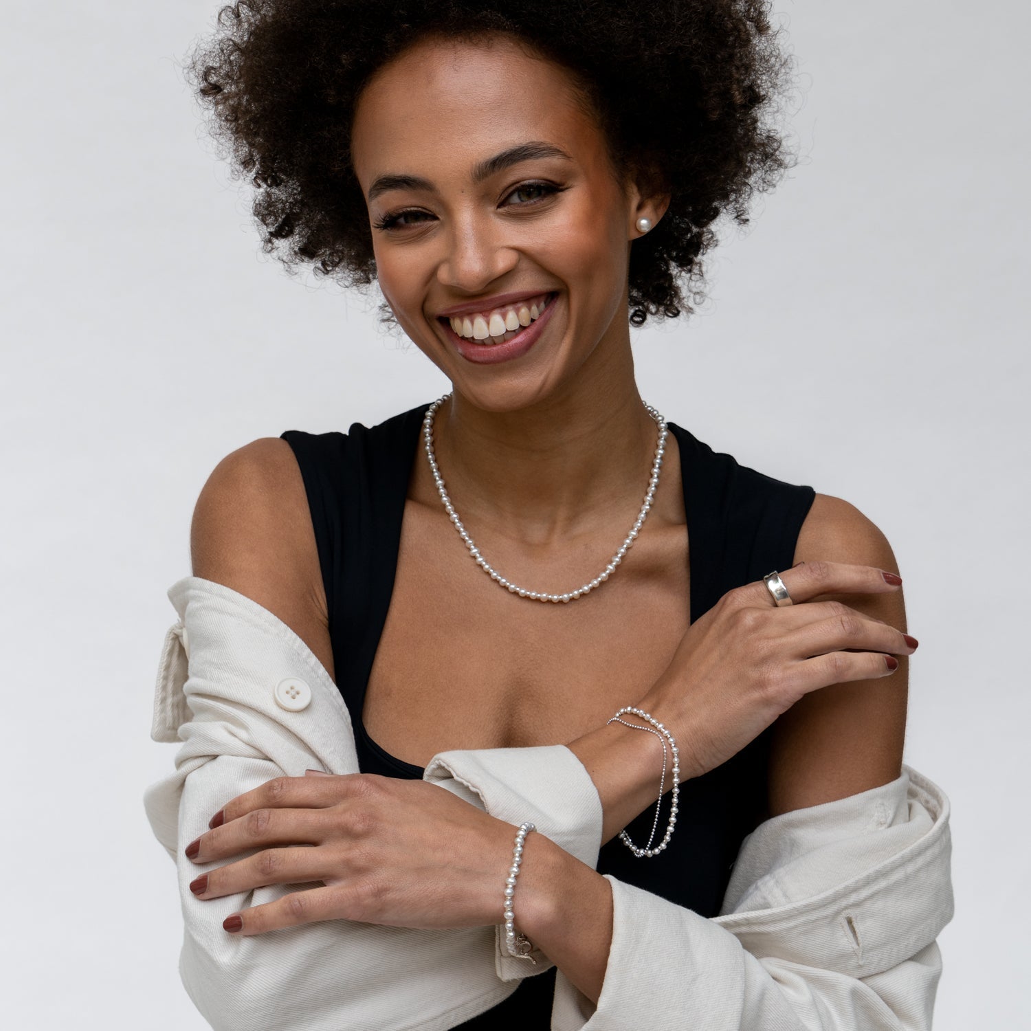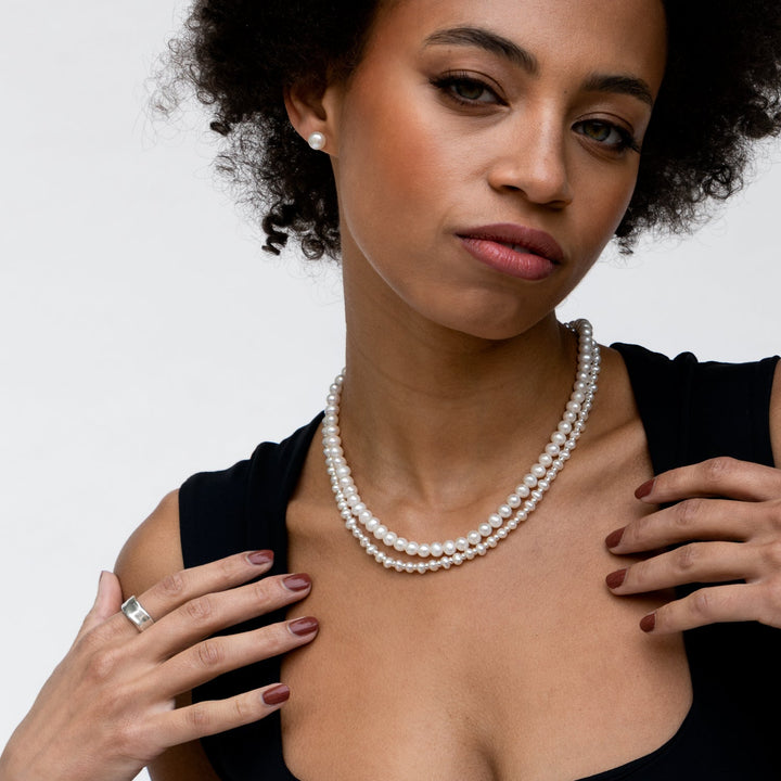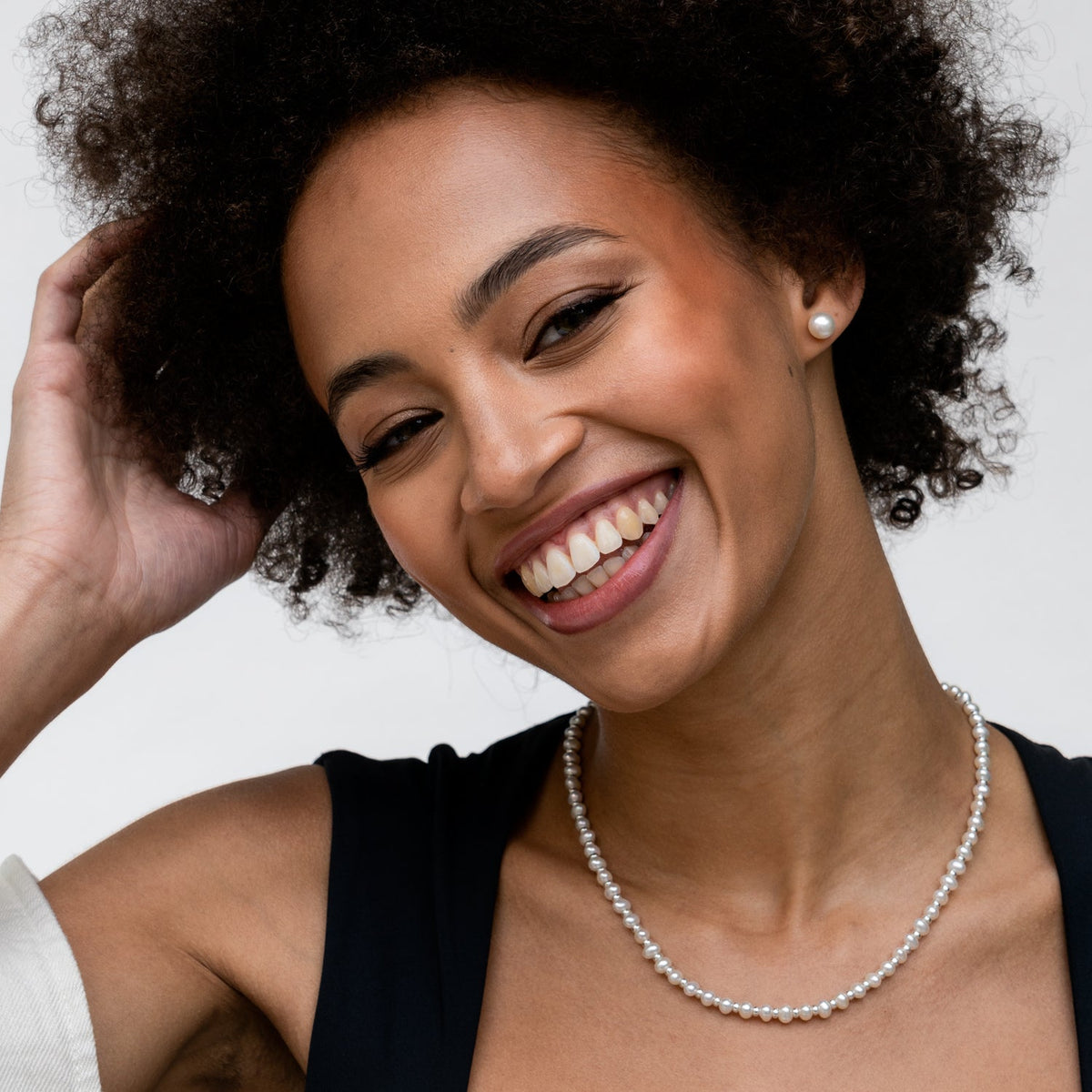 Handcrafted in sterling silver with white cultured freshwater pearls. Available in sizes 6mm, 8mm, and 10mm.