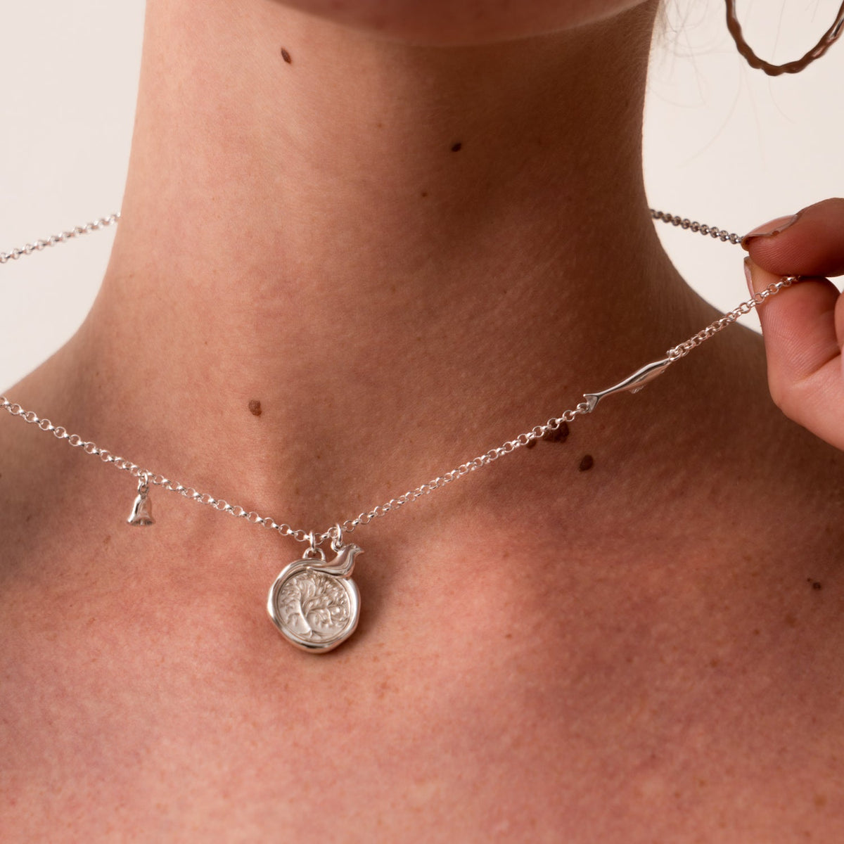 Sterling silver. Tree pendant size: 17mm. Necklace available in three chain lengths.