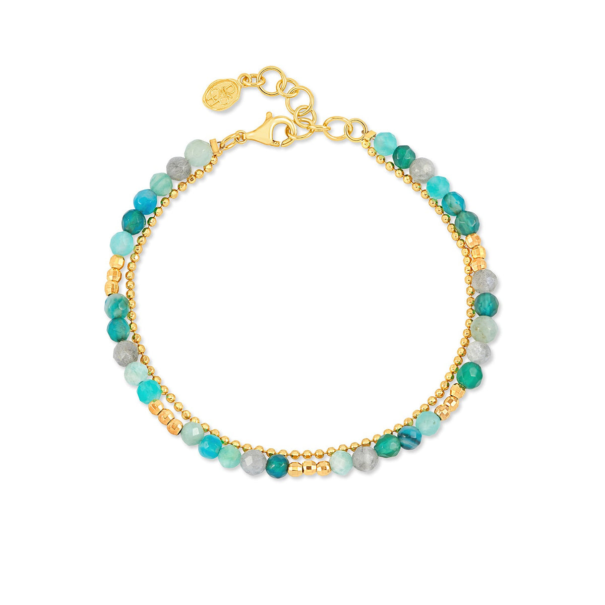 Handcrafted in sterling silver or with 18ct yellow gold vermeil finish. Faceted apatite, chalcedony, blue agate, and labradorite gemstones. Adjustable length: 7-8 inches.