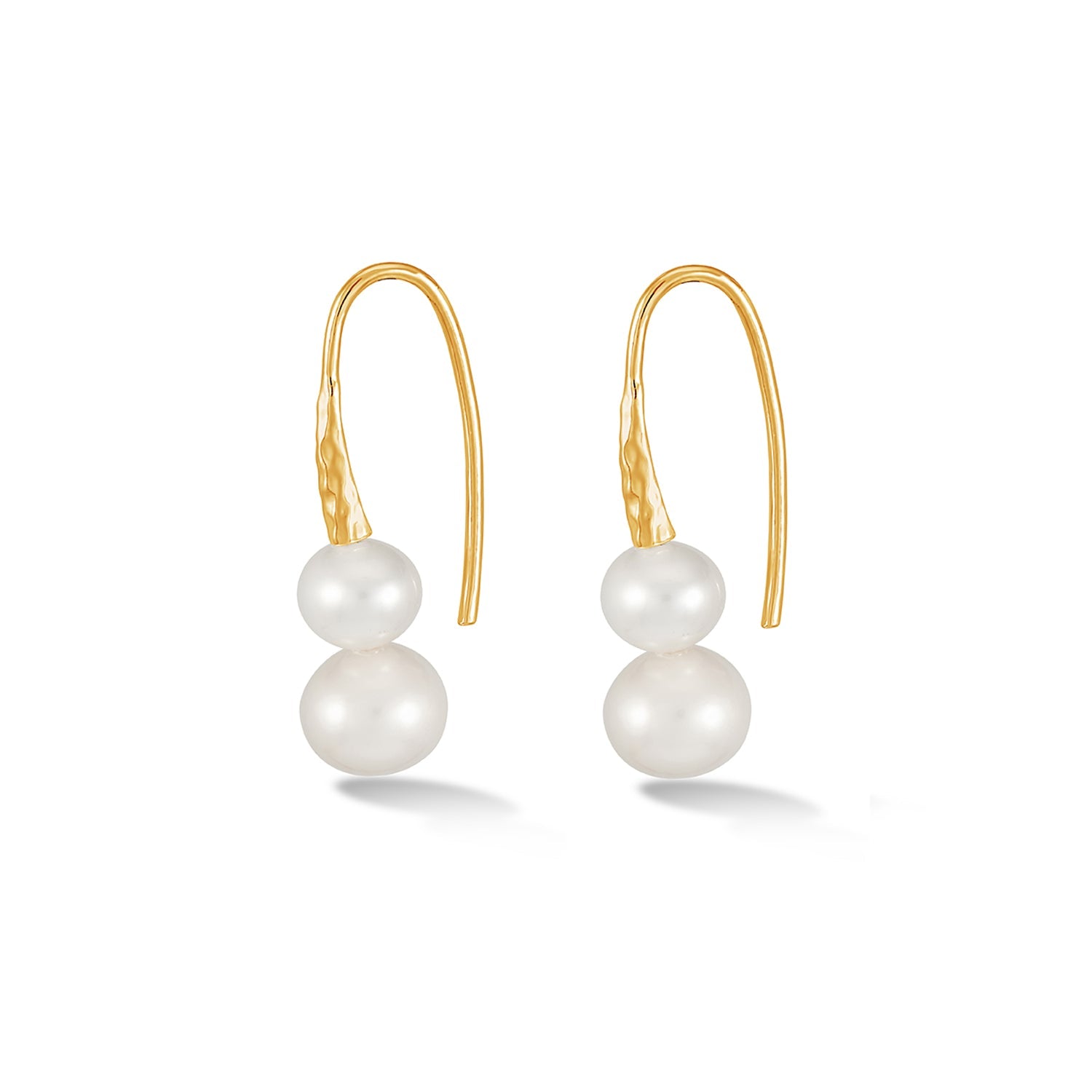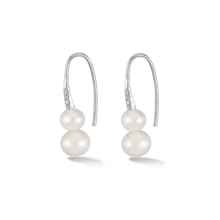 These Timeless White Pearl Duo Earrings by Dower & Hall showcase classic pearls in a modern design. The earrings feature two luminous white freshwater pearls set onto static, hammered ear wires, creating a refined and contemporary look. These timeless earrings are perfect for any occasion.