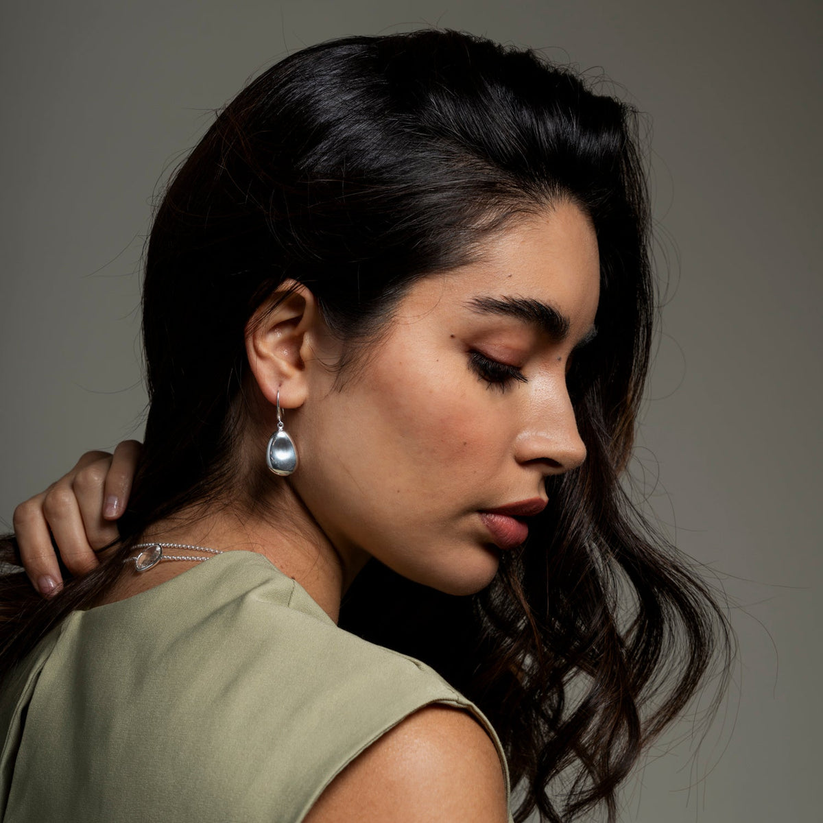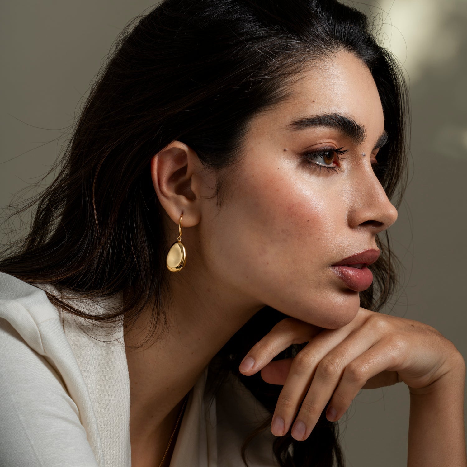 These Large Pebble Drop Earrings by Dower & Hall are handcrafted from sterling silver with a subtle dimpled texture, hanging elegantly from signature ear wires. Available in both sterling silver and radiant yellow gold vermeil finishes, these earrings are perfect for adding understated elegance to any look.