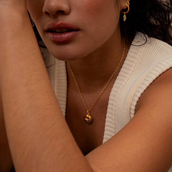 Handcrafted in sterling silver or with yellow gold vermeil finish. Set with a 2pt diamond. Locket size: 16mm.
