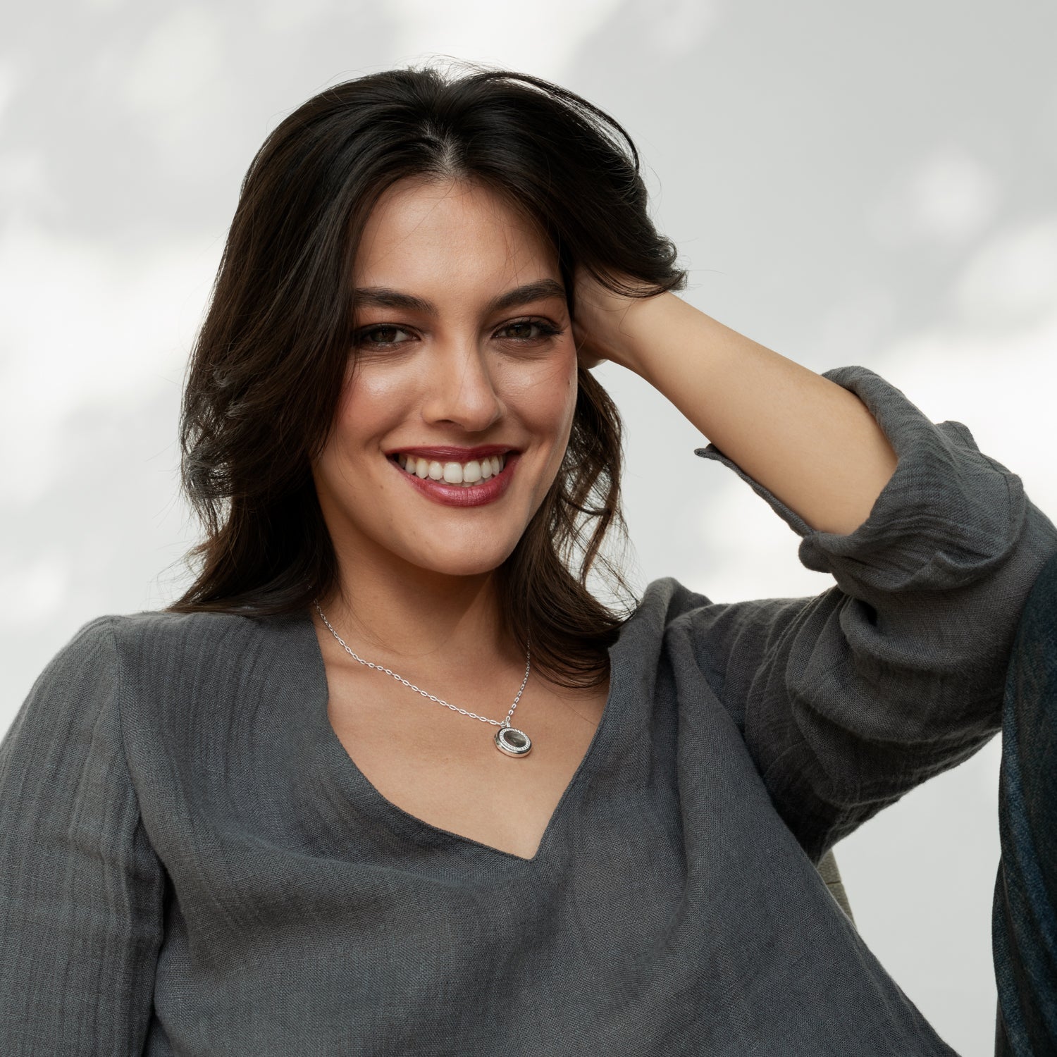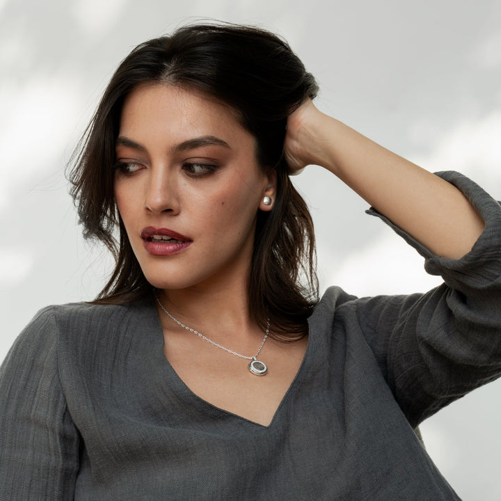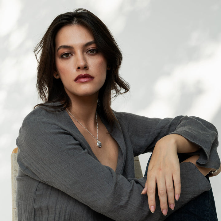 This Gleam Sapphire Locket by Dower & Hall is a beautifully crafted, round locket set with four sparkling white sapphires. Designed to capture and hold precious memories, this locket can be engraved for a personal touch and opens to reveal two photographs or keepsakes. The locket is suspended from an adjustable millie-grain chain, offering both elegance and versatility for any occasion.