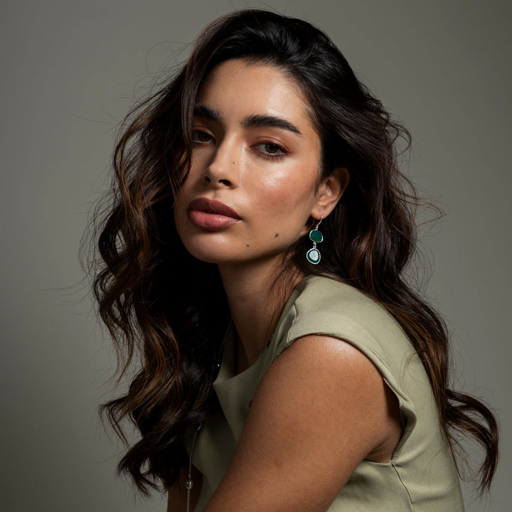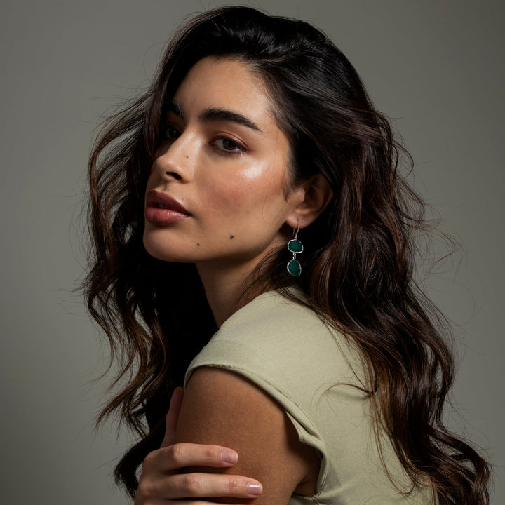 These Green Onyx Pebble Drop Earrings by Dower & Hall offer a perfect blend of natural design and modern sophistication. The earrings feature two green onyx gemstones, set in sterling silver or with a yellow gold vermeil finish, creating a bold statement. With a total length of 50mm, these earrings are ideal for those who love a statement piece that adds color and depth to any ensemble.