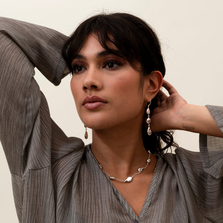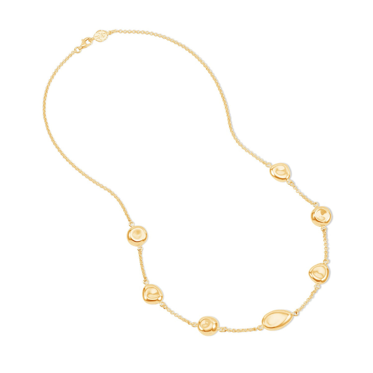 This Multi Pebble Necklace by Dower & Hall combines natural forms with modern design. Seven organically-shaped pebble pods, each with a subtle dimple, are suspended on a sterling silver or yellow gold vermeil chain. Perfect for layering or wearing solo.